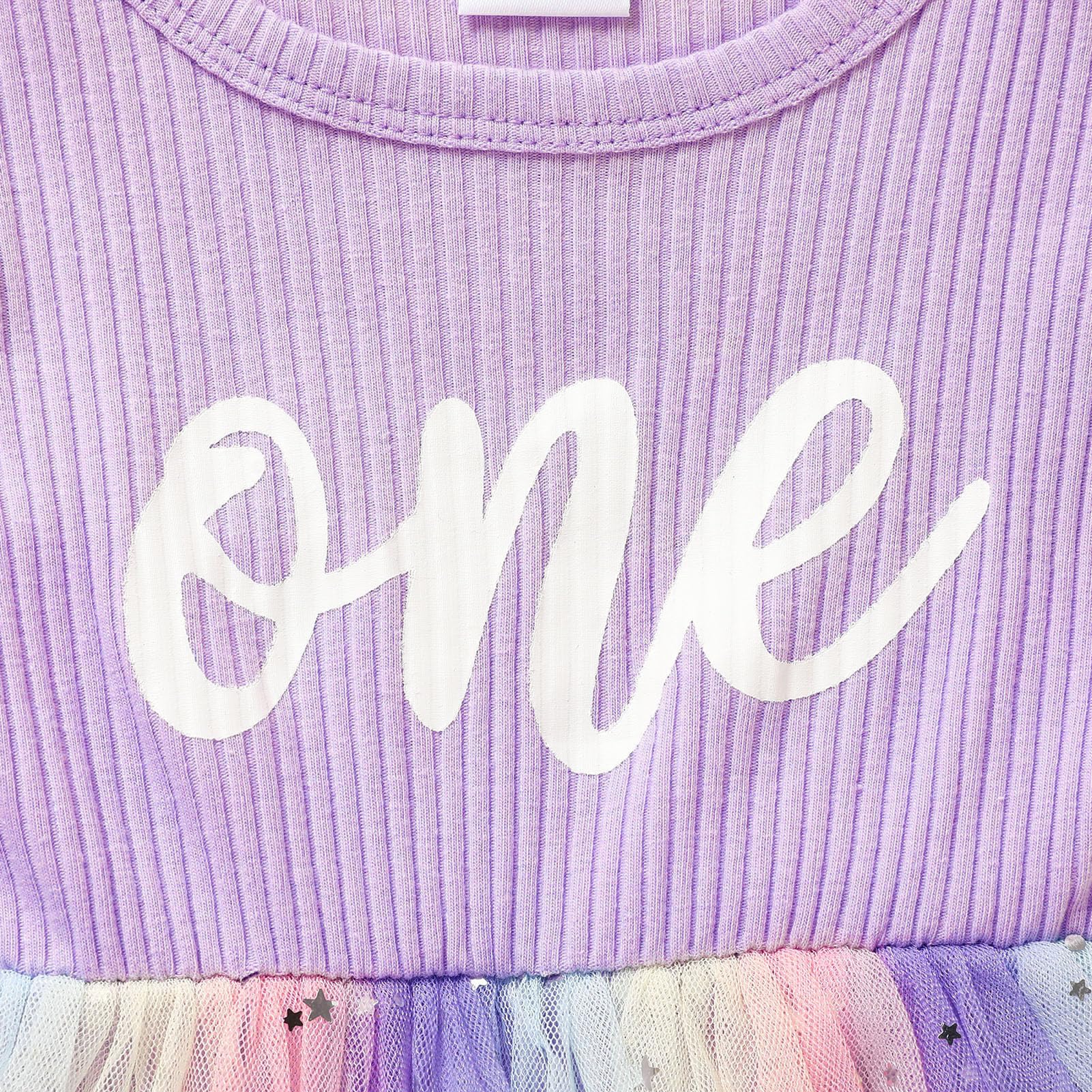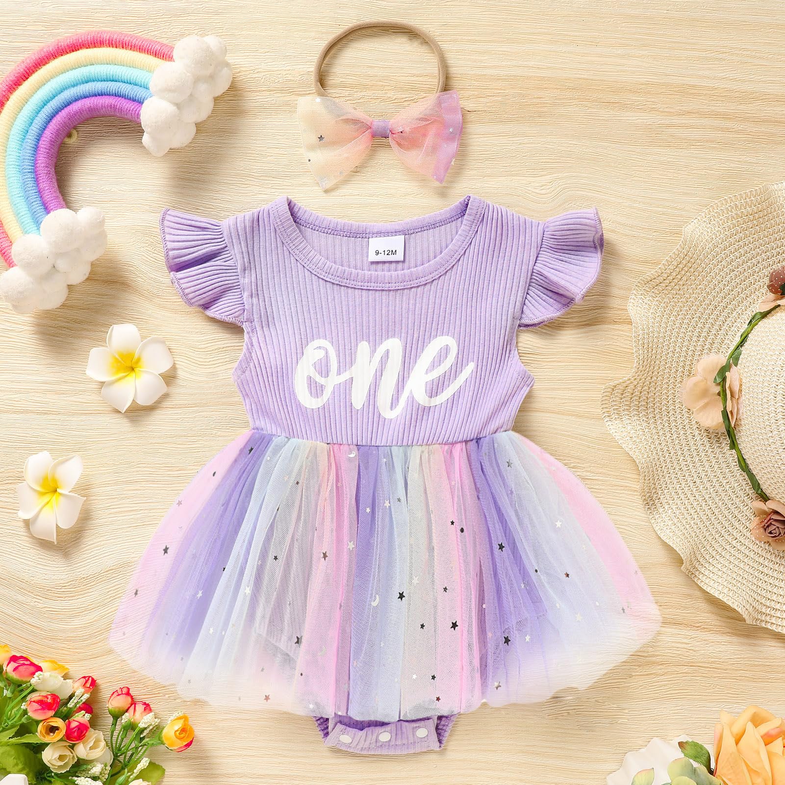 🎀 1ST BIRTHDAY ROMPER - "One" letters and lovely strawberry / butterfly / donuts print romper, three snaps for easily diaper changing, candy colors cake smash outfits, ruffle ribbed tulle one-piece clothes for your little girl's first birthday.