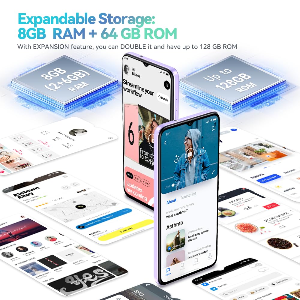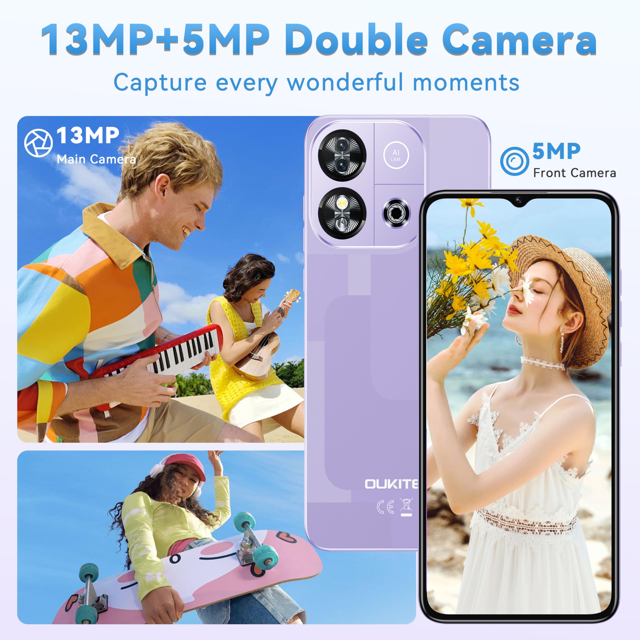 [ Performance ] The OUKITEL C57S unlocked smartphone features 8GB RAM (6GB virtual memory) and 64GB ROM storage, expandable to 128GB via TF card. It supports seamless multitasking and fast loading times, powered by a Unisoc SC9863A+ octa-core processor (1.6GHz)