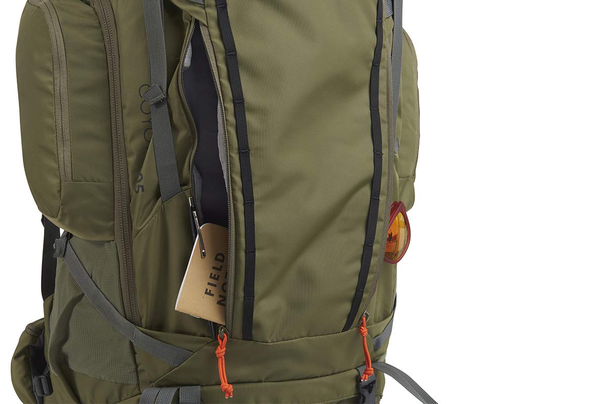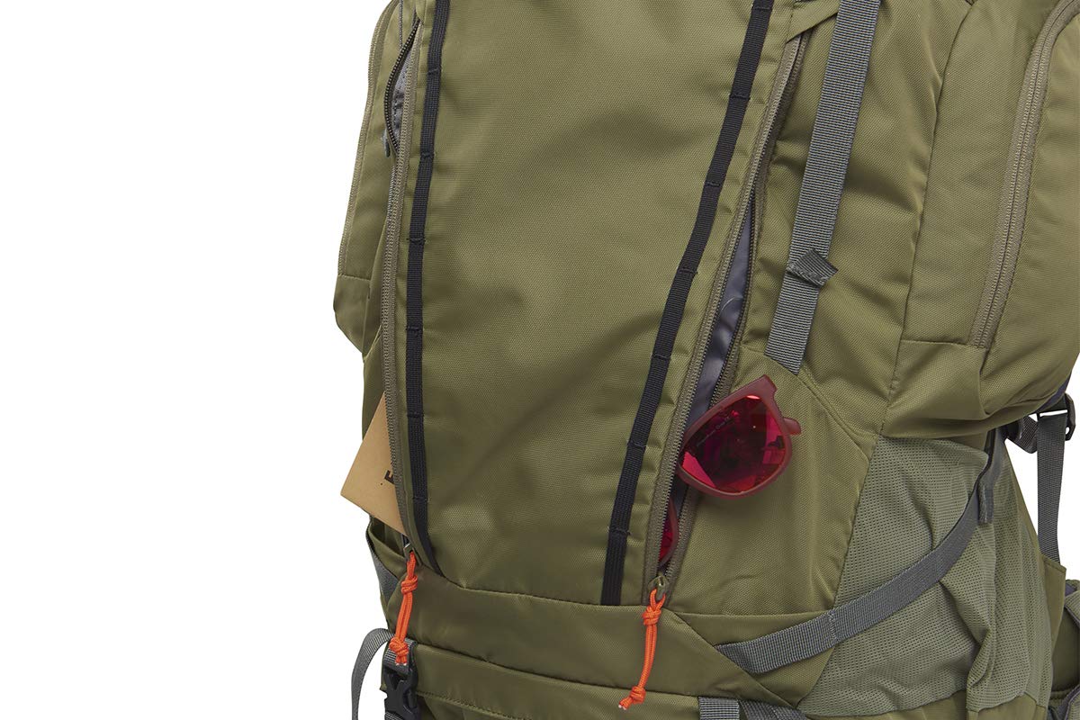 Plenty of Pockets: Kelty Signature wing pockets, two front zippered pockets, and large J-zip top loading access to the main compartment. Daisy chains, water bottle pockets, and sleeping bag compartment keep everything tidy on the trail.