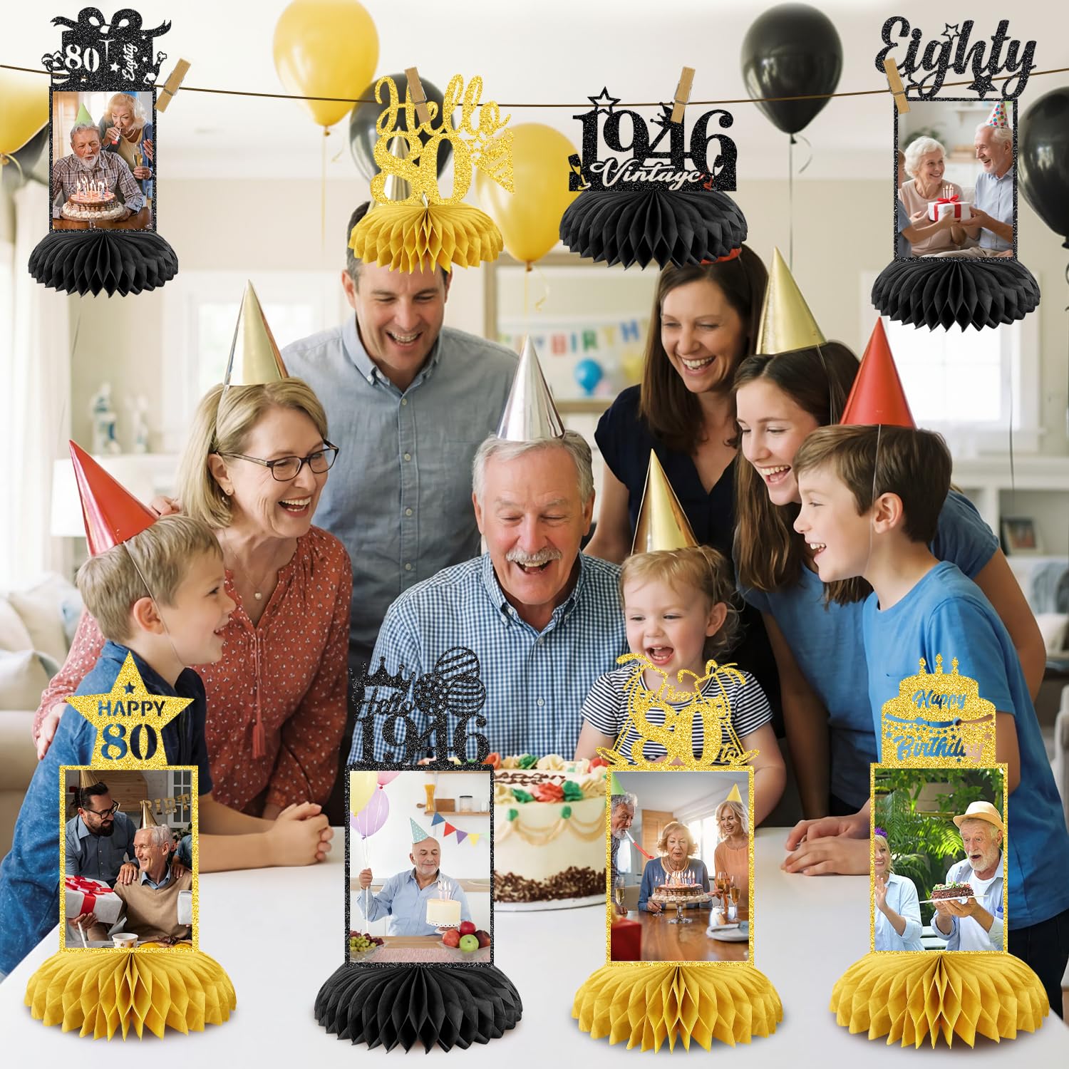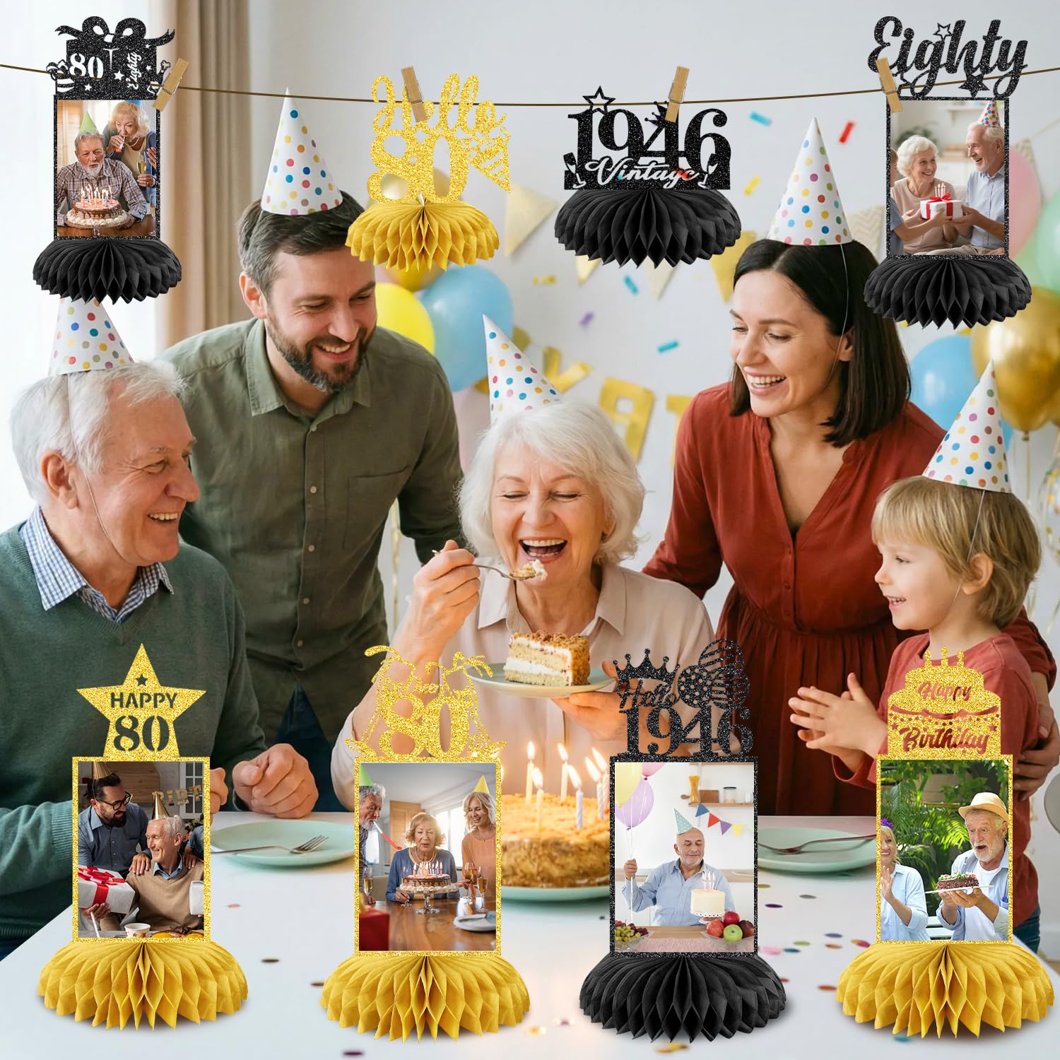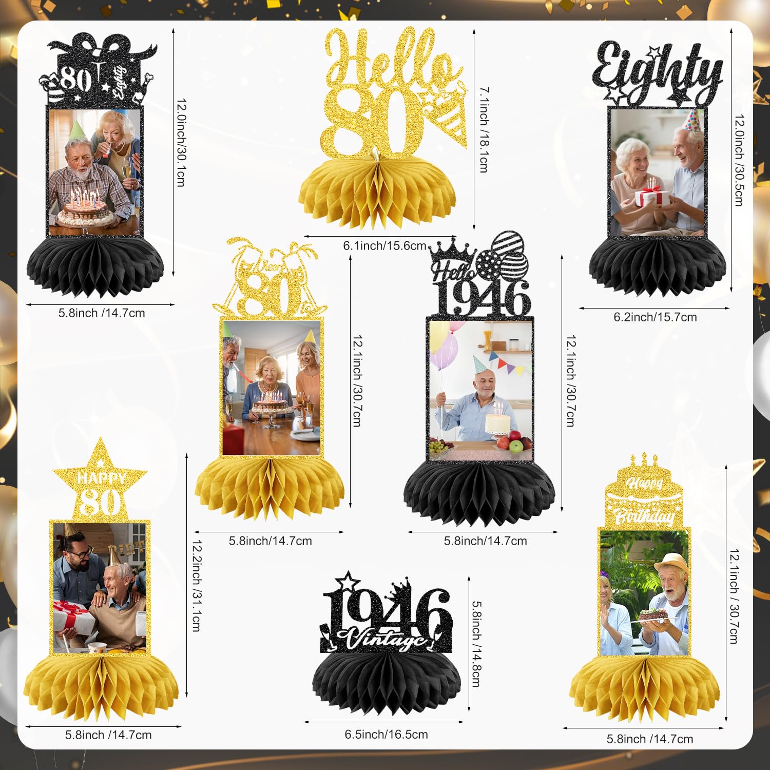 💖80th BIRTHDAY PACKAGE INCLUDES: Our 80th birthday decorations for men women including 8 patterned cardboard and 16 paper honeycombs. These decorations exquisitely designed with interesting birthday elements. It is very suitable as a decoration for your 80th birthday table decorations, you can place it on the table or hang it with a clip