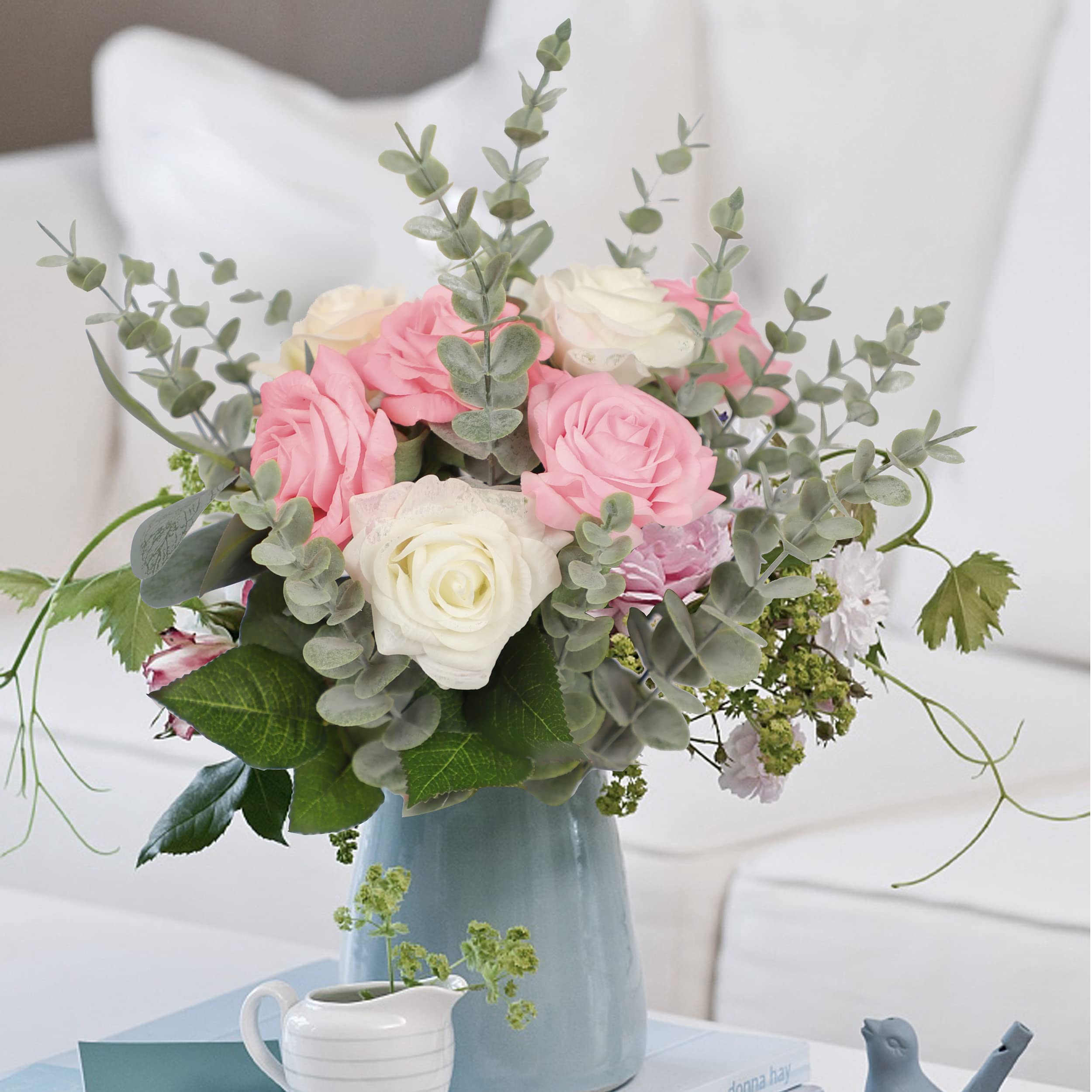 [Versatile Use] These artificial eucalyptus stems can be shaped optionally due to the iron wire embedded. Combine the artificial eucalyptus stems with different kinds of flowers to make bouquets or use several eucalyptus stems with a mini vase to table decor at will. You can also use them to make wall hanging decor, door wreaths and so much more.