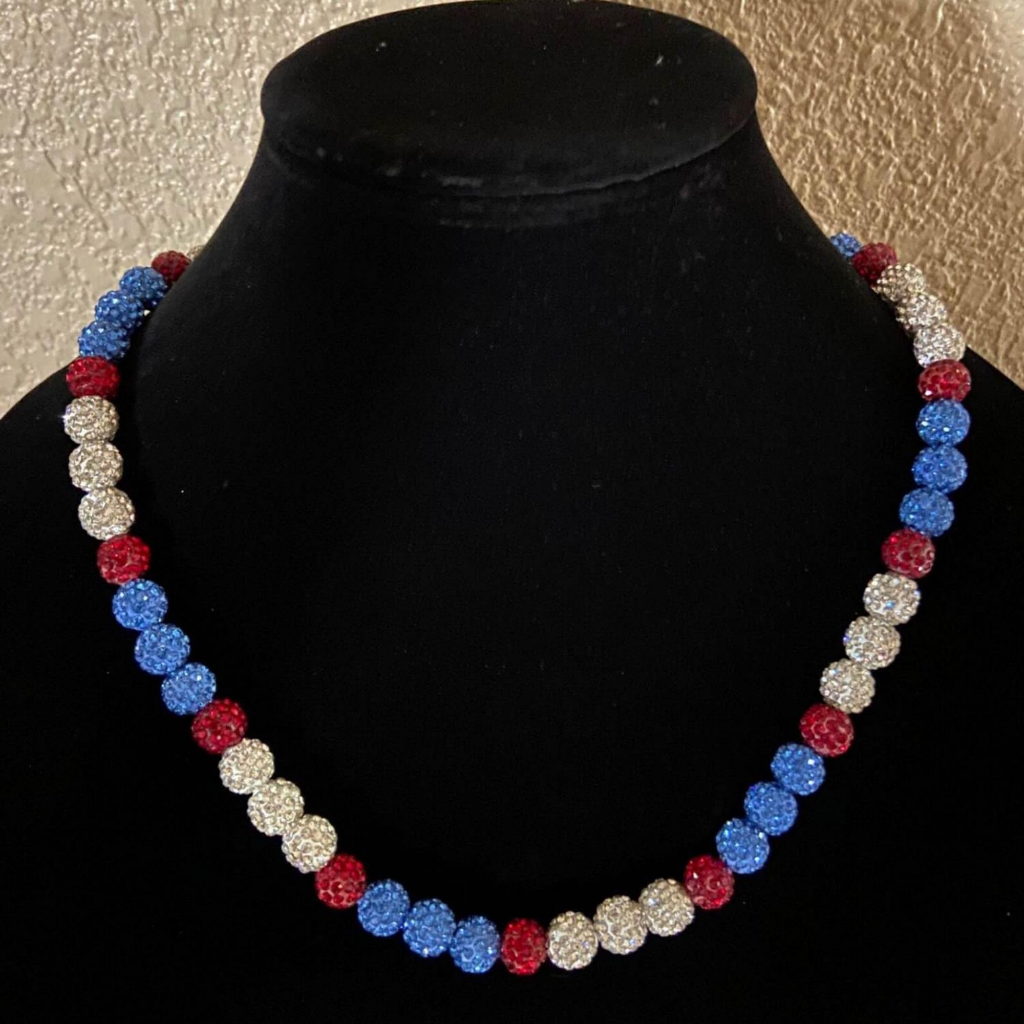 Description Rhinestone Discoball Necklace๏ผShow your love for your favorite baseball teams with this beautifully crafted beaded necklace