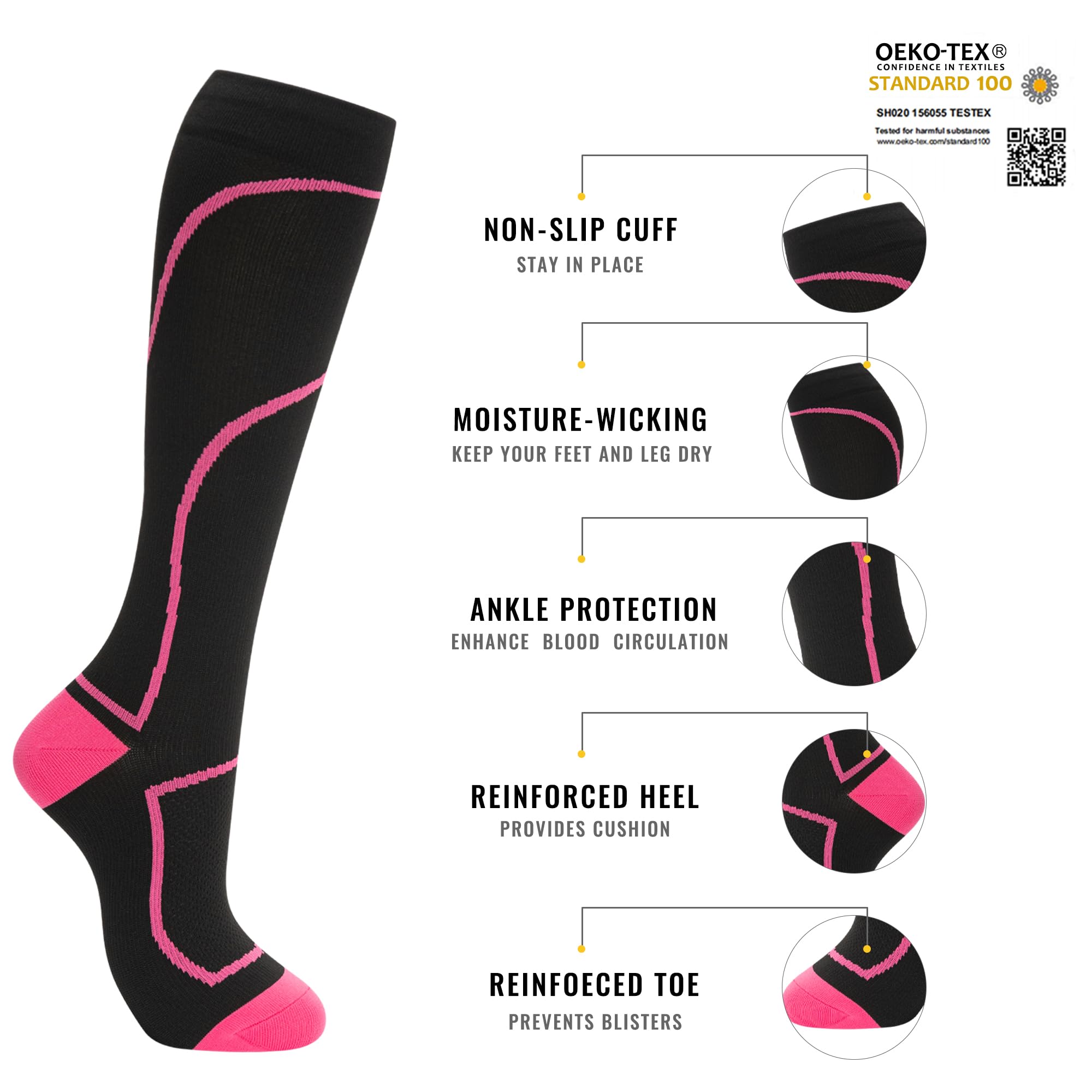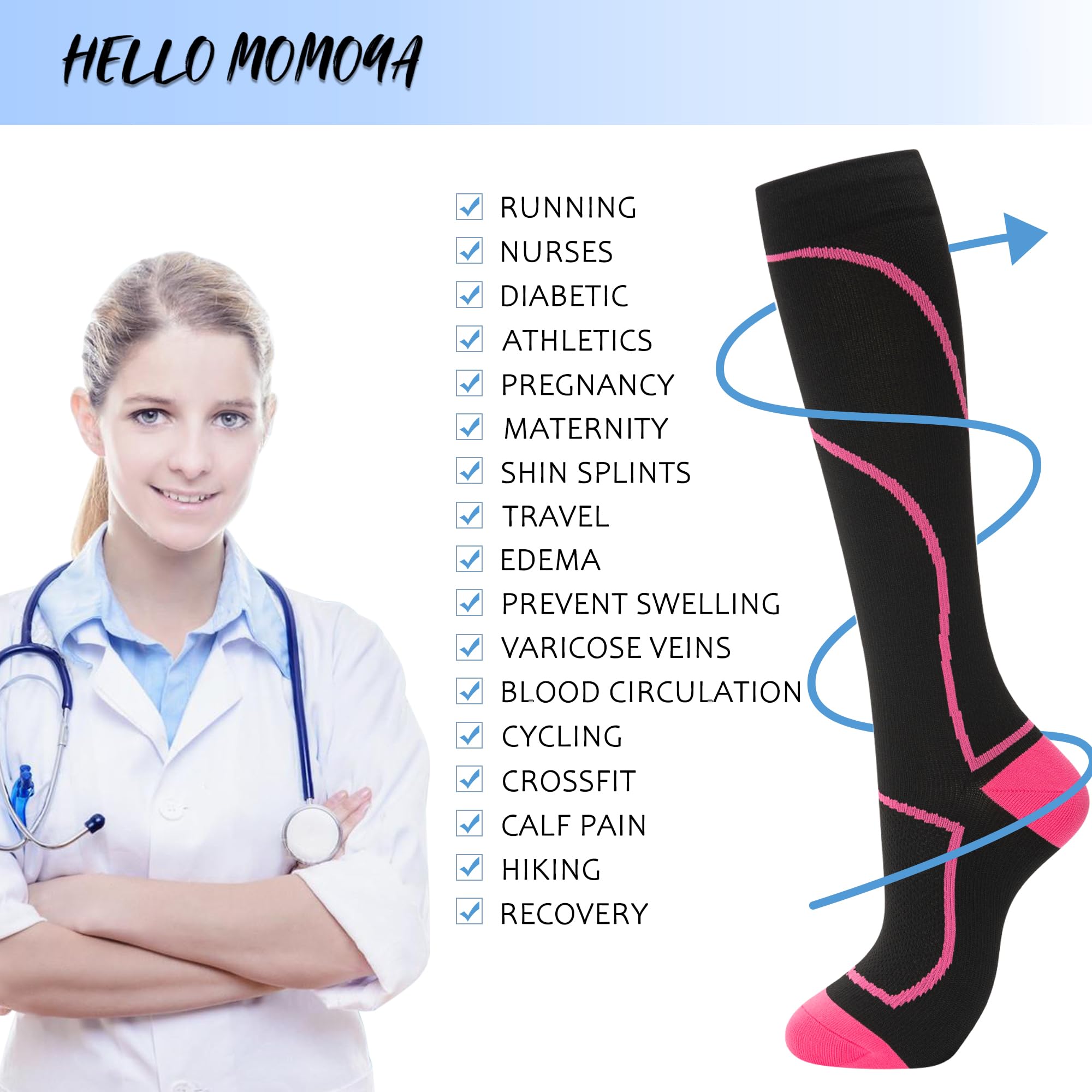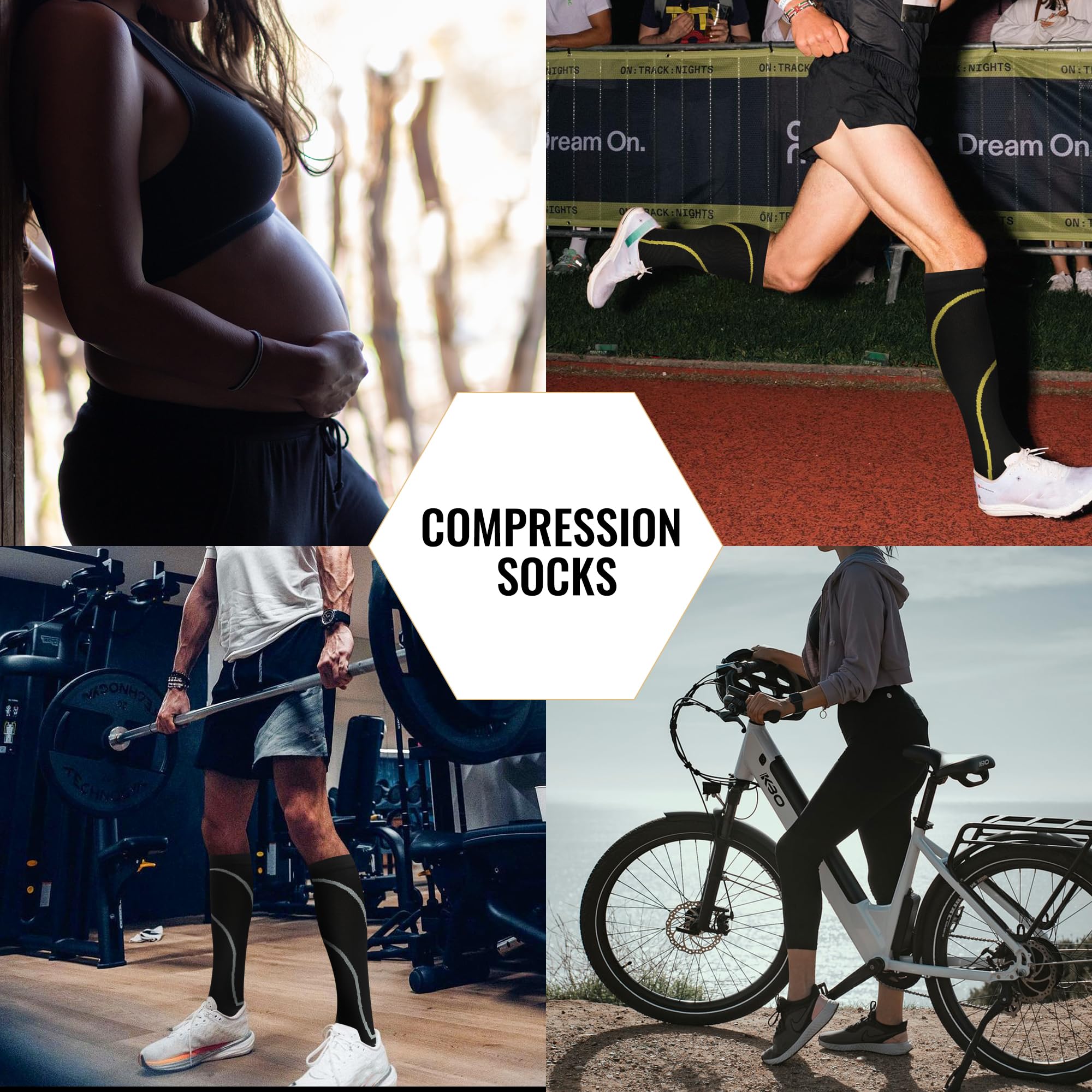 ALL FOR YOUR HEALTH: Everyone can benefit from our socks, from athletes to nurses and anyone who makes a living on their feet. Our nurse compression socks are your secret to improve circulation, so your limbs feel energized. For pregnant women, embrace the joys of pregnancy with our maternity compression socks. For jetsetter or flyer, these compression socks for flying are your travel companion. Looking for athletic compression socks for men? Our socks are designed to fit all of your needs.