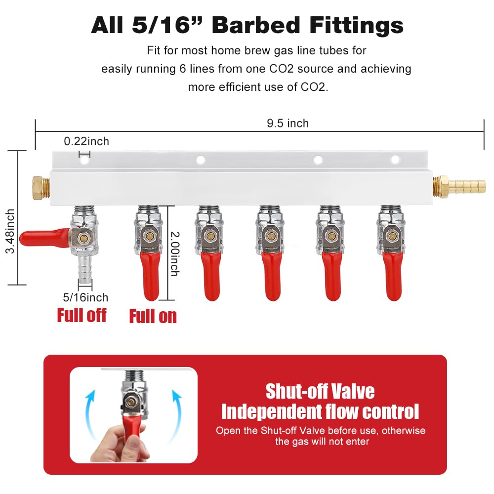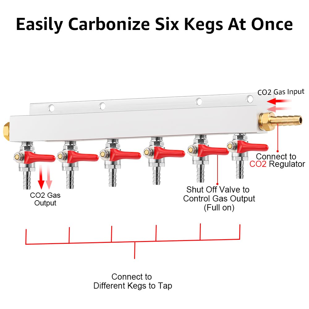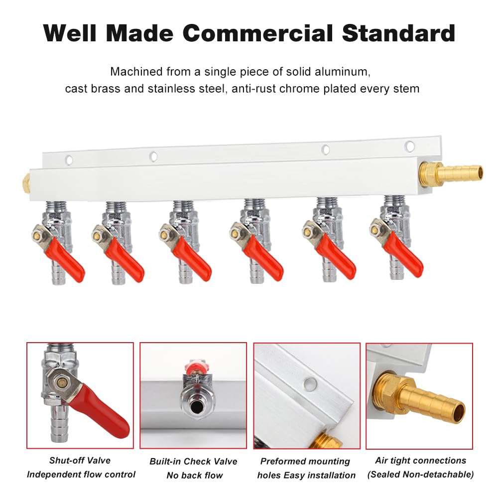Professional Multi-Channel Gas Distribution: Precisely controls CO2 flow. Ensure consistent carbonation pressure in each keg to achieve stable carbonation and ensure perfect taste. 6 way co2 manifold can easily running 6 lines from one CO2 source to split the gas supply and meanwhile achieving more efficient use of CO2 easily