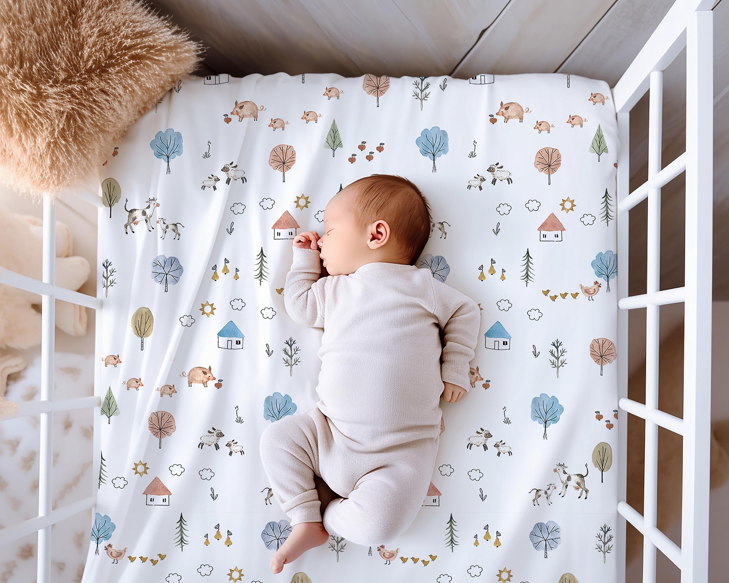 π INCREDIBLY SOFT & BEAUTIFUL β This beautiful custom pattern is printed on the most luxuriously soft cotton blend. Thicker elastic and deeper pockets ensure that our crib mattress sheet will NOT slip off the mattress. Youβll feel the incredibly soft, yet stretchy and silky material as you pull the sheets and snug, creating a safe and soothing space for your baby to sleep.