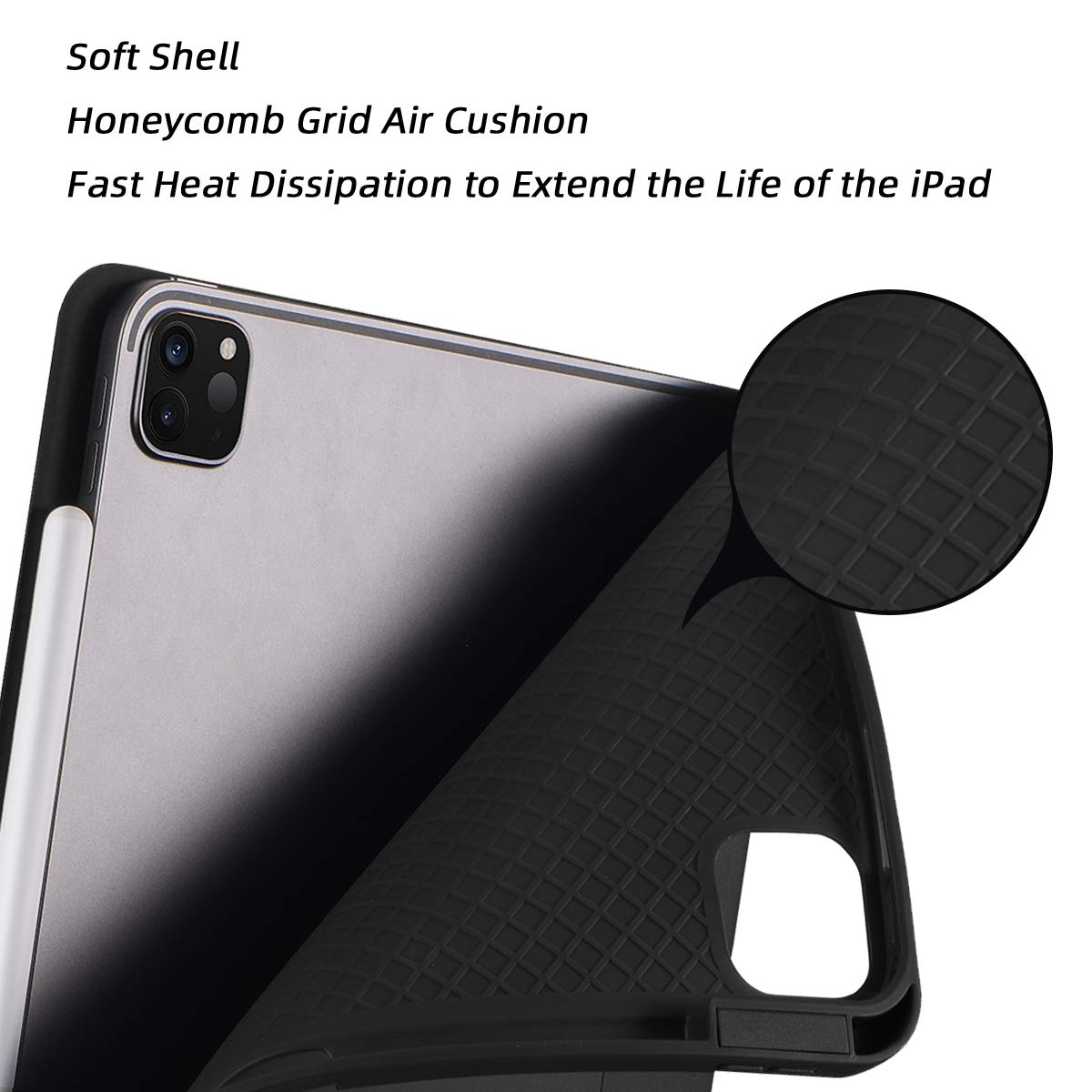 Perfect Fit: Easy access to all the controls and features (Cameras, Speaker, Ports and Buttons). Support Apple Pencil's magnetic adsorption and wireless charging function. The inner layer provides honeycomb grid pattern air cushion. It can extend the life of ipad