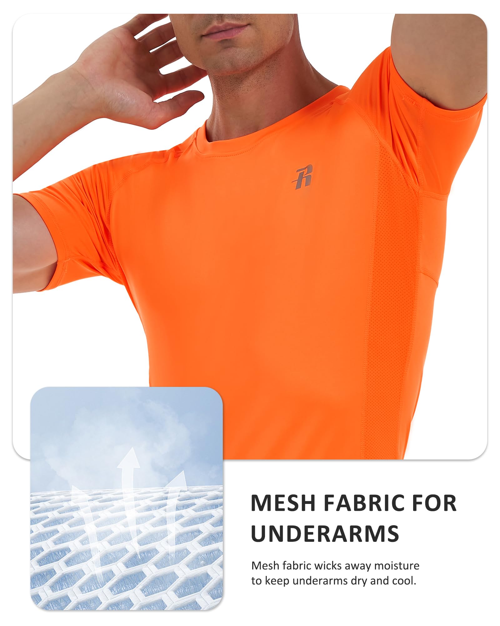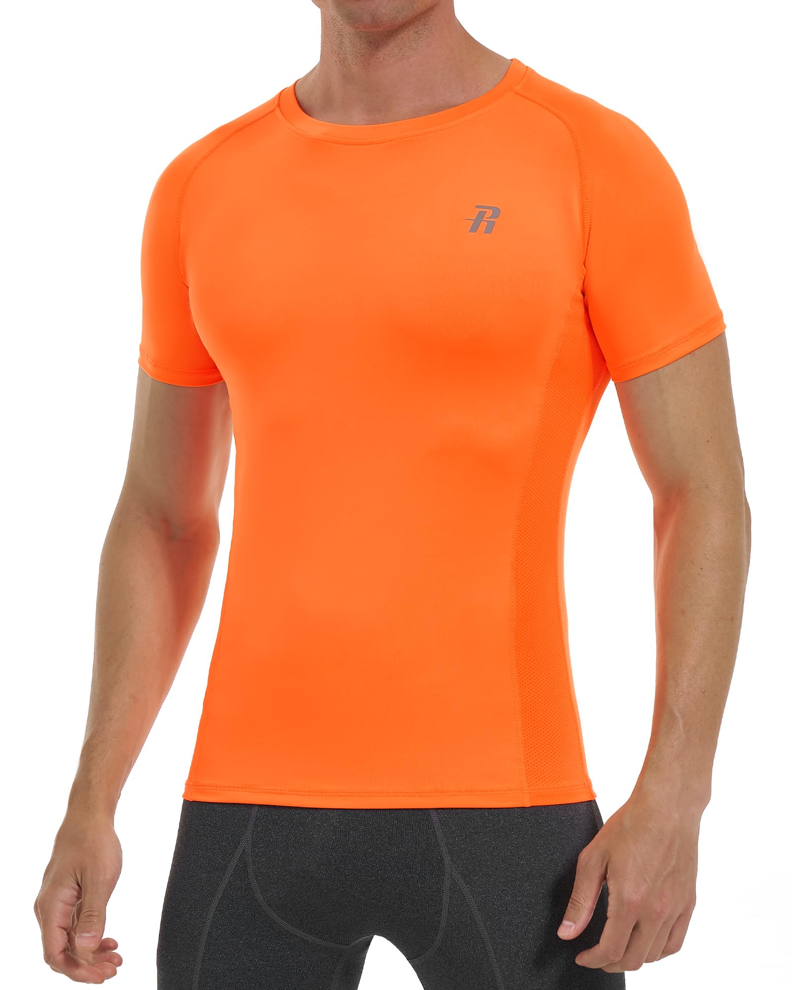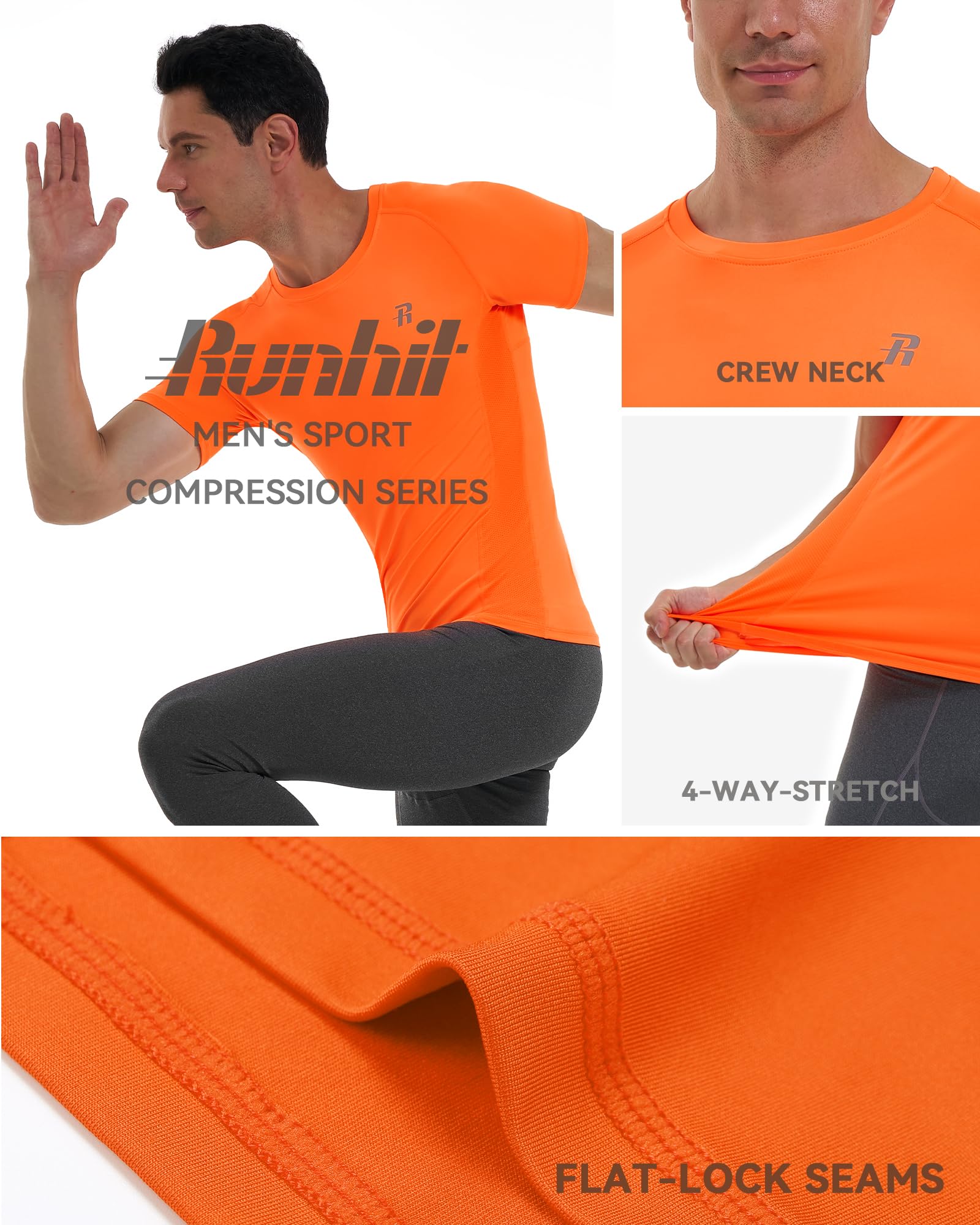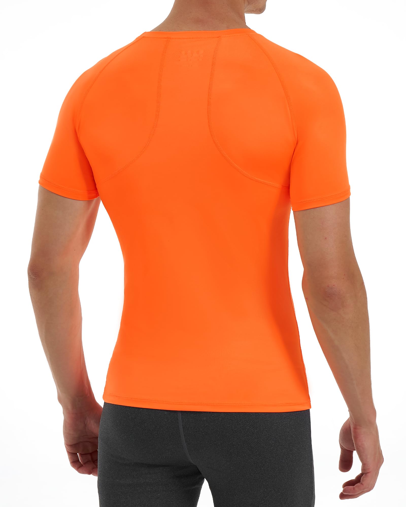 [Four-Way Stretch]: This men short sleeve compression shirt snugly conforms to your skin, providing stable support and helping to reduce muscle fatigue. Smooth flatlock seams and tagless design help minimize friction, ensuring a pleasant and comfortable experience during physical activities.