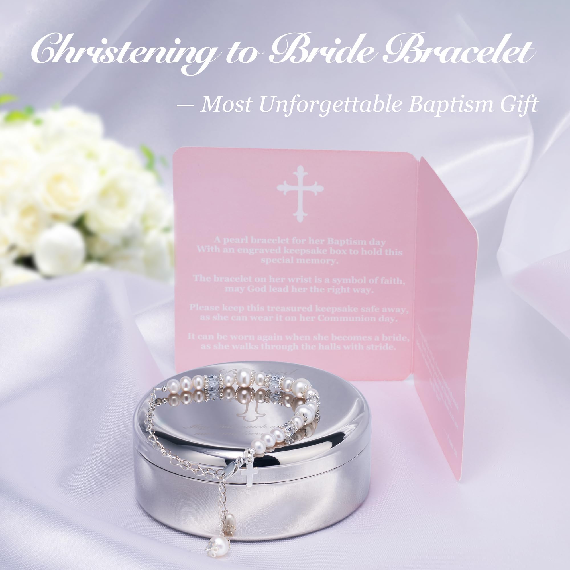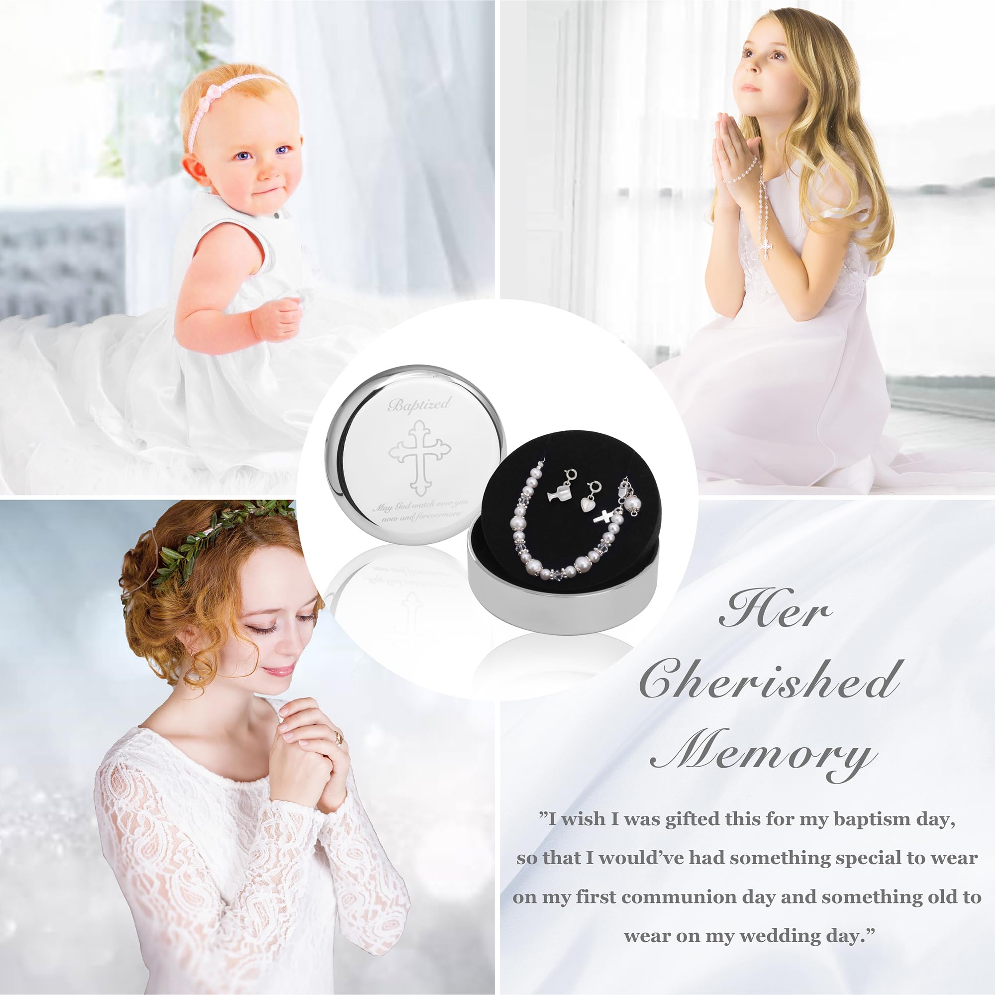 More Than A Baptism Bracelet - A unique keepsake for her every special moment. She can wear it for her baptismal ceremony and first communion day. It can also be worn again as "something old" when she becomes a bride.