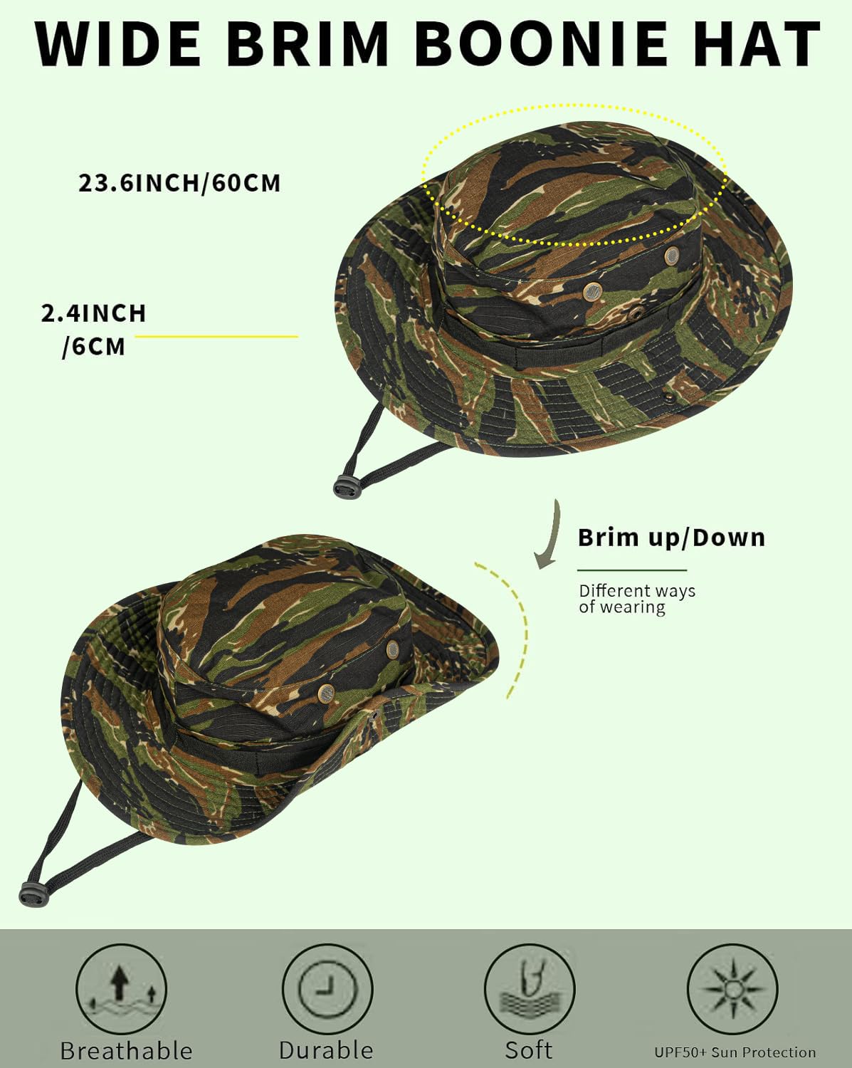 GOOD DESIGN WIDE BRIM HAT:The well-designed summer outdoor hat has two ways to use it. Both sides are equipped with rust-proof buttons. When the brim is rolled up, it is a cowboy hat. Loosen it, will be a fashionable sun-proof fisherman hat/safari hats for men and women.