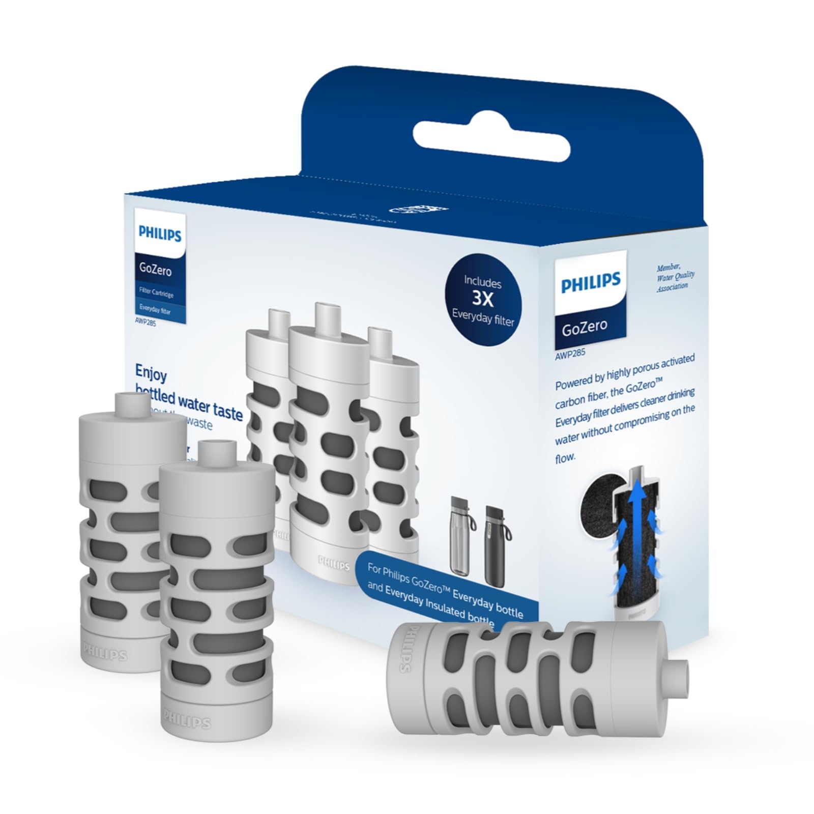 ★ 𝐄𝐧𝐣𝐨𝐲 𝐂𝐥𝐞𝐚𝐧 & 𝐓𝐚𝐬𝐭𝐲: Enjoy of cleaner, fresher-tasting drinking water on-the-go with the Philips GoZero Everyday water filter bottle that instantly improves the taste of water by reducing chlorine and particulates (taste and odor). The activated carbon fiber filter instantly transforms tap water into cleaner, tastier & healthy drinking water.