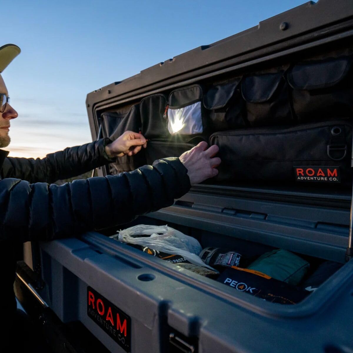 Description ROAM, born on the trails and crafted by overlanders, infuses adventure into every product. Its rugged cases are renowned for securing and safeguarding gear from the elements. By combining ROAM's adventurous spirit with the Rugged Case and adding organization, you create an expedition-ready gear management system. ROAM's newest innovation, the Case Lid Organizer, is exclusively designed for ROAM's Rugged Cases (new versions with pre-installed threaded inserts). Available in three sizes, this page features the 95L Lid Organizer.
