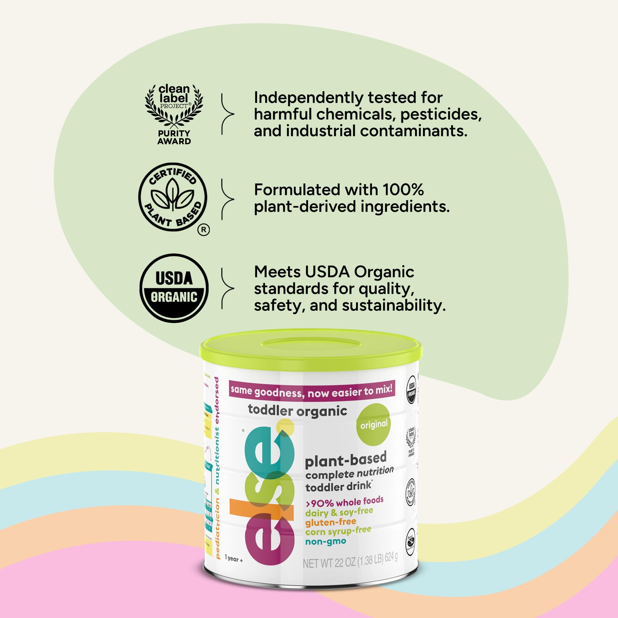 ✔ 𝐂𝐞𝐫𝐭𝐢𝐟𝐢𝐞𝐝 𝐎𝐫𝐠𝐚𝐧𝐢𝐜 𝐚𝐧𝐝 𝐂𝐥𝐞𝐚𝐧 𝐋𝐚𝐛𝐞𝐥: Every serving of this organic toddler drink is USDA certified organic and Clean Label Project Purity Award-winning. With no soy dairy, gluten, corn syrup, or GMOs, it offers c omplete nutrition that strengthens immunity, improves digestion, and caters to special dietary needs.