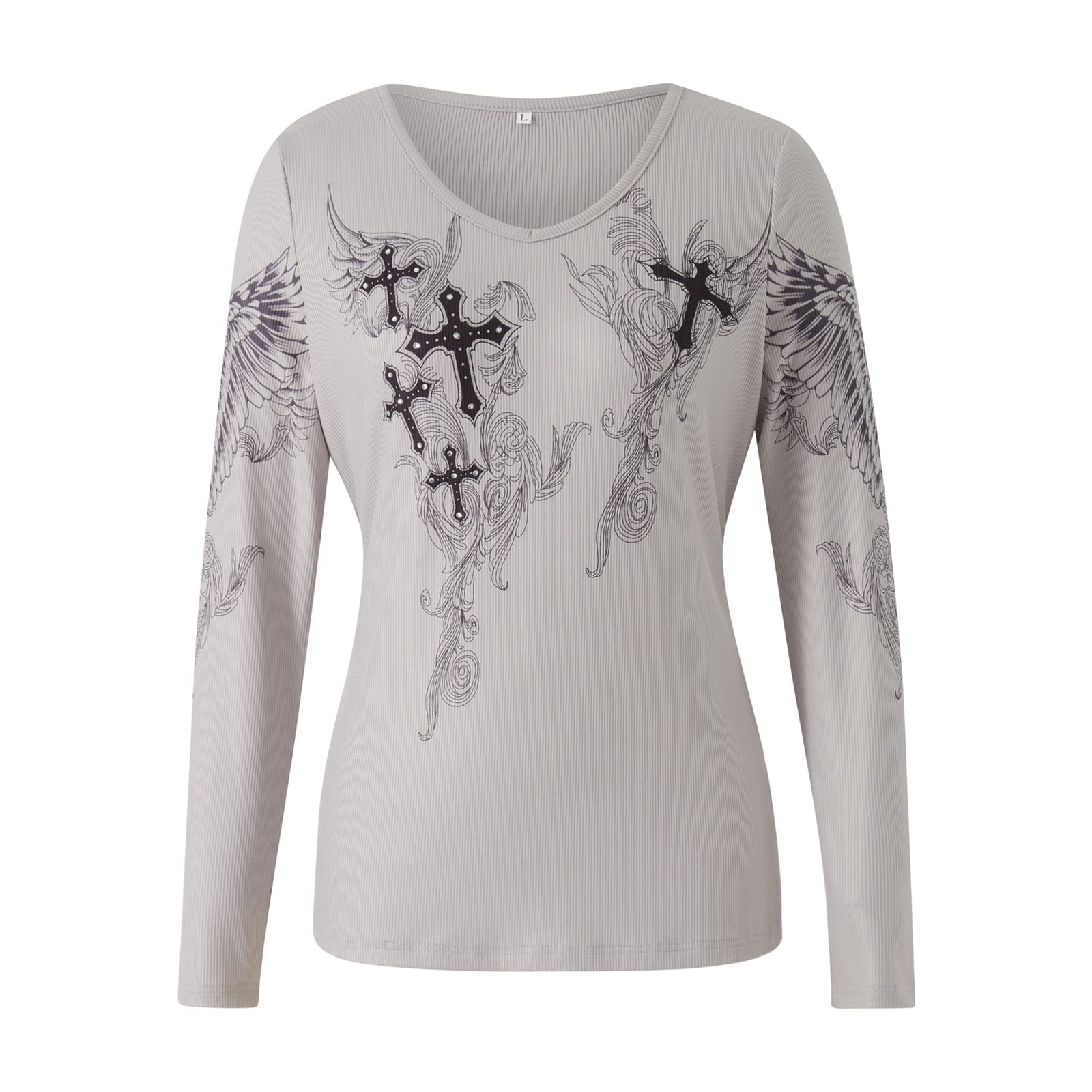 Features: Women y2k tops fairy grunge shirts, long sleeve, crew neck/ v neck, rhinestone deco, vintage graphic print, butterfly print, cropped or normal length, slim fit blouse tops, tight shirts for women, ribbed y2k tops, y2k goth aesthetic clothing, trendy teens 90s egirl Harajuku gothic clothes fall streetwear.