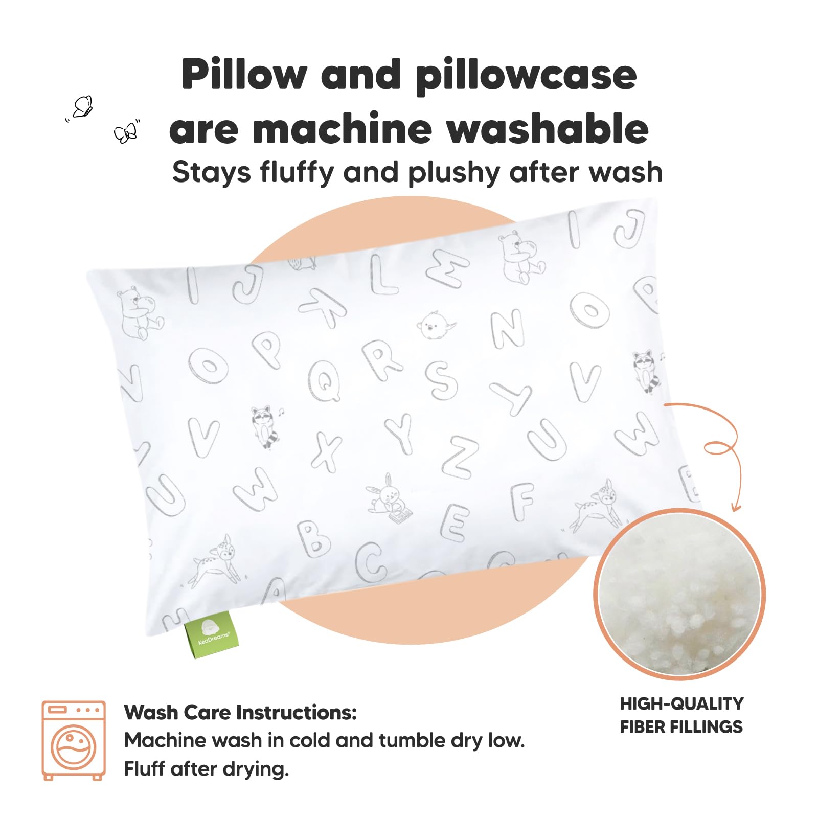 Durable & Washable - Our toddler pillows and toddler pillowcases are machine washable and dryable for easy cleaning. Made from high quality organic cotton pillow cover and fiber fillings, this small pillow stays fluffy, fresh and cute for regular use.