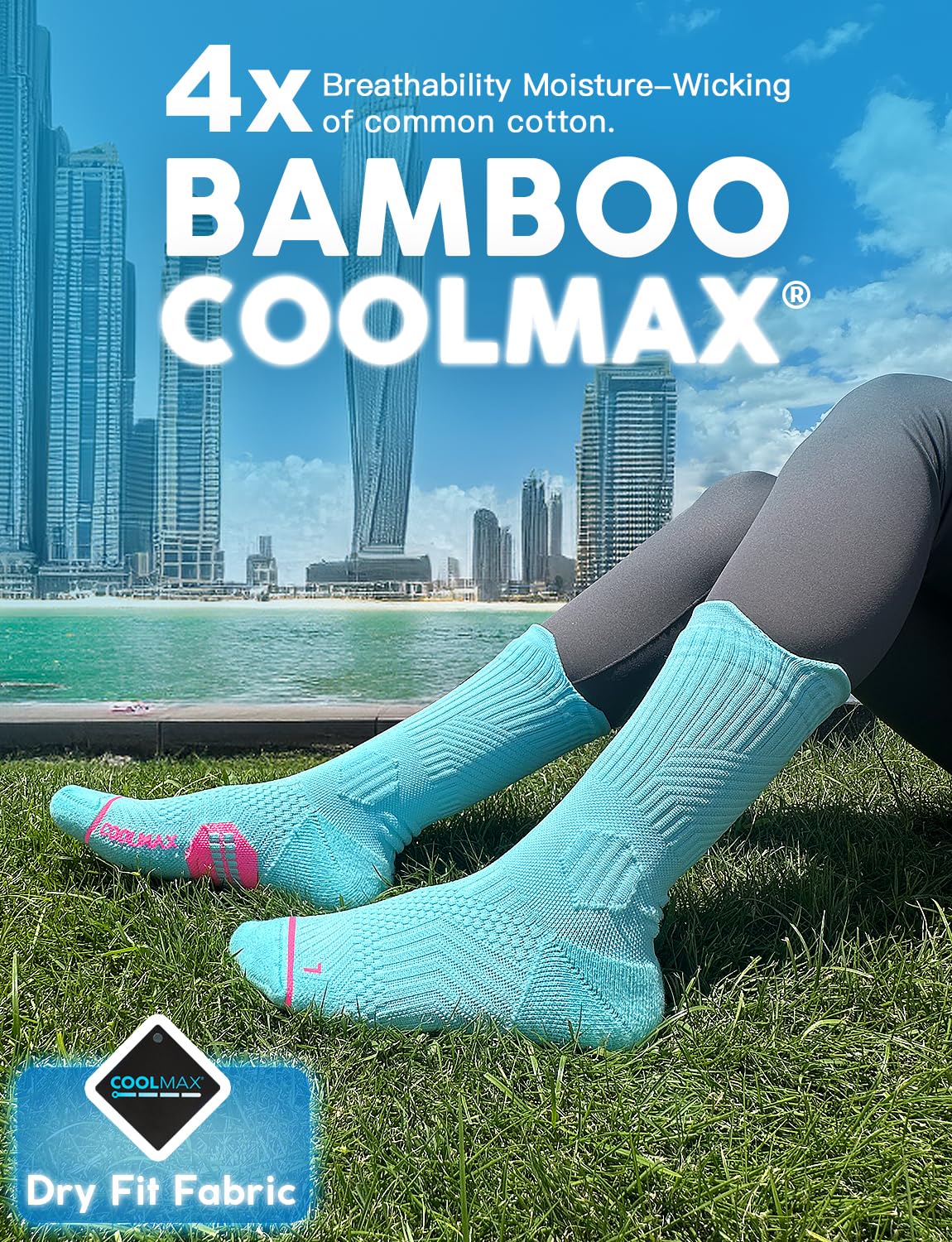 【Stay Cool, Stay Confident】 Bamboo Viscose + Coolmax blend excels at moisture-wicking, keeping feet dry through HIIT workouts or humid trail adventures. Bamboo viscose naturally resists odors and wicks moisture for daylong freshness—ideal for high-intensity cycling classes or post-jogging errands.
