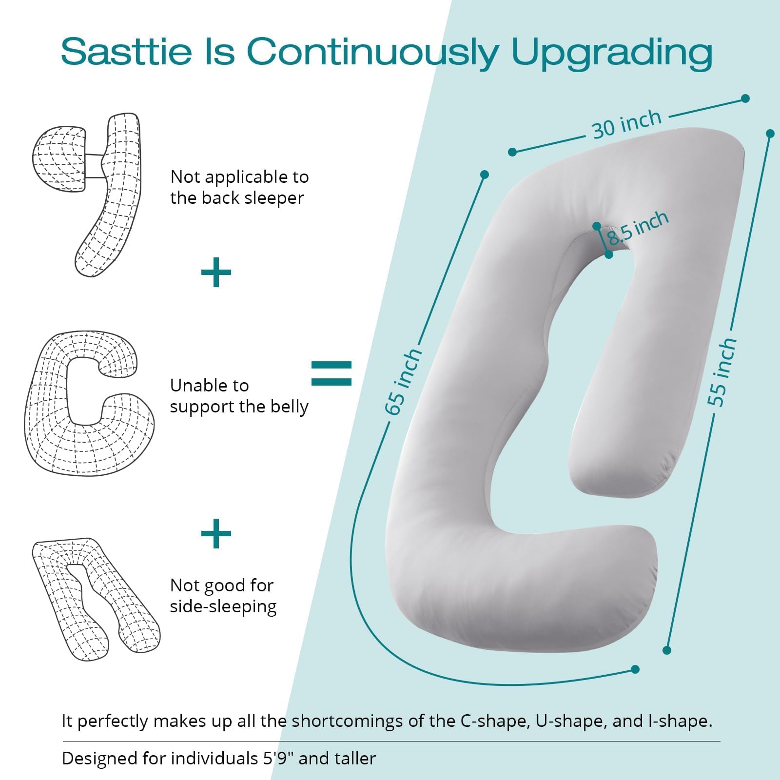 Upgraded U Shaped Pregnancy Pillows: Features an ergonomically designed shape, SASTTIE 4.0 U-shaped pregnancy pillow could fit your body well and provide firm support for your sore shoulders, numb arms, growing belly, tight back, as well as swollen feet