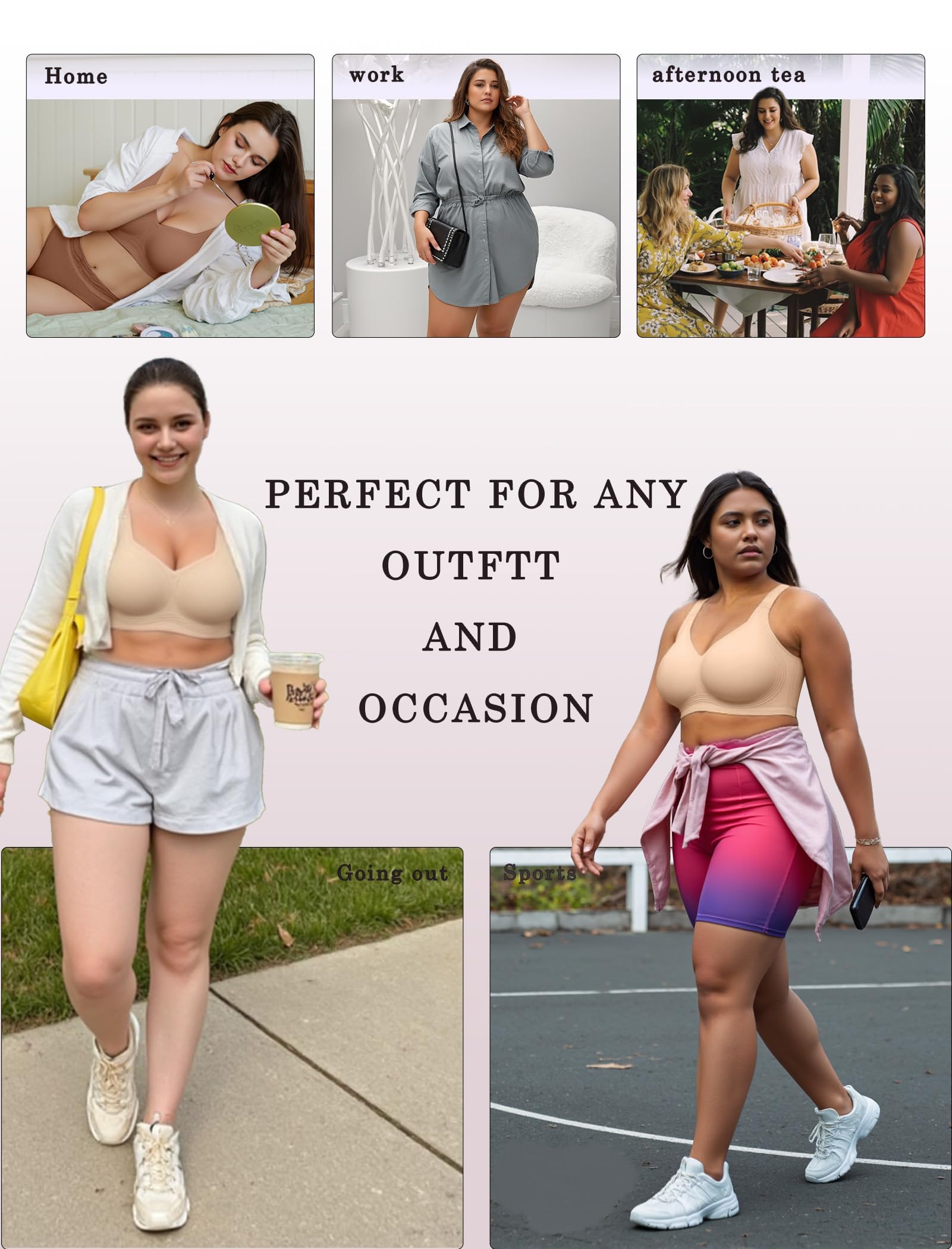 Designed Specifically for Plus-Size Women - Our plus size bra come in a wide range of sizes from S to 4XL, suitable for fuller-busted women with cup sizes B to DDD. The bra feature widened shoulder straps to relieve pressure and prevent slipping or digging, ensuring a secure fit, Providing a strong lift and support for a perfectly contoured bust. Durable straps offer all-day comfort and support. Convertible straps allow for two styles: a sexy X-back or a trendy U-back—no need for multiple bras!