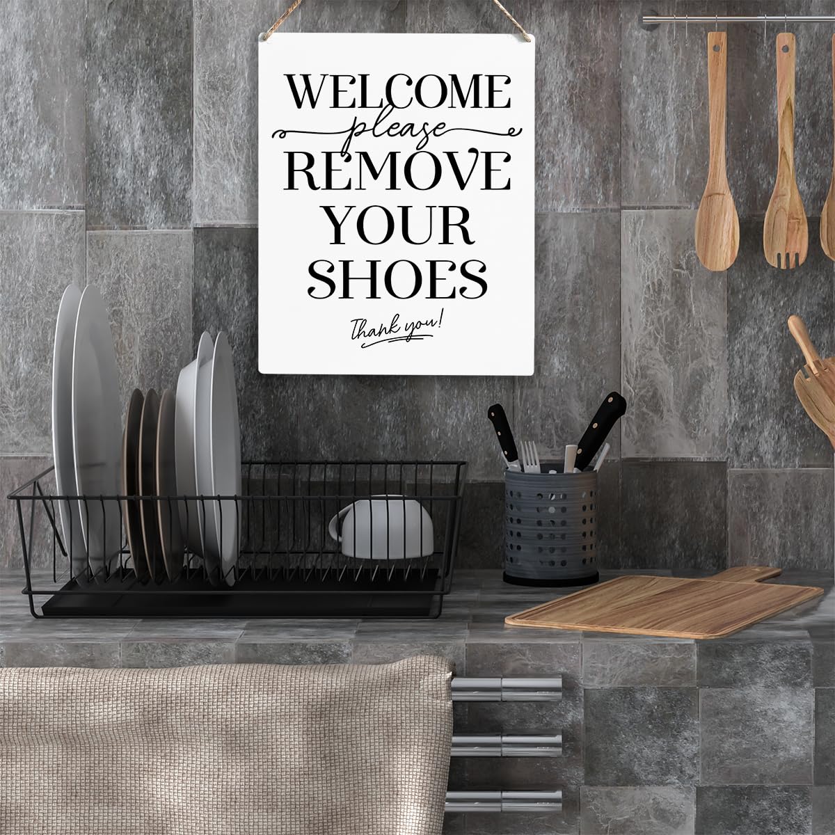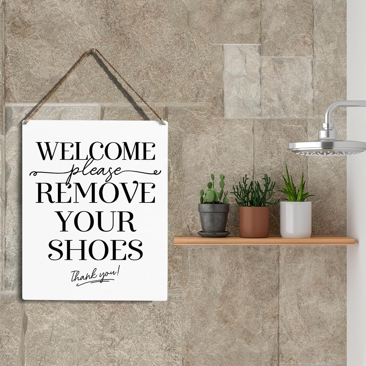 Easy Hanging: Installation is extremely easy. There are two reserved holes and a free rope of each sign that easy to be hung on any wall surface, etc. It can also be put atop a table, desk or counter to spruce it up