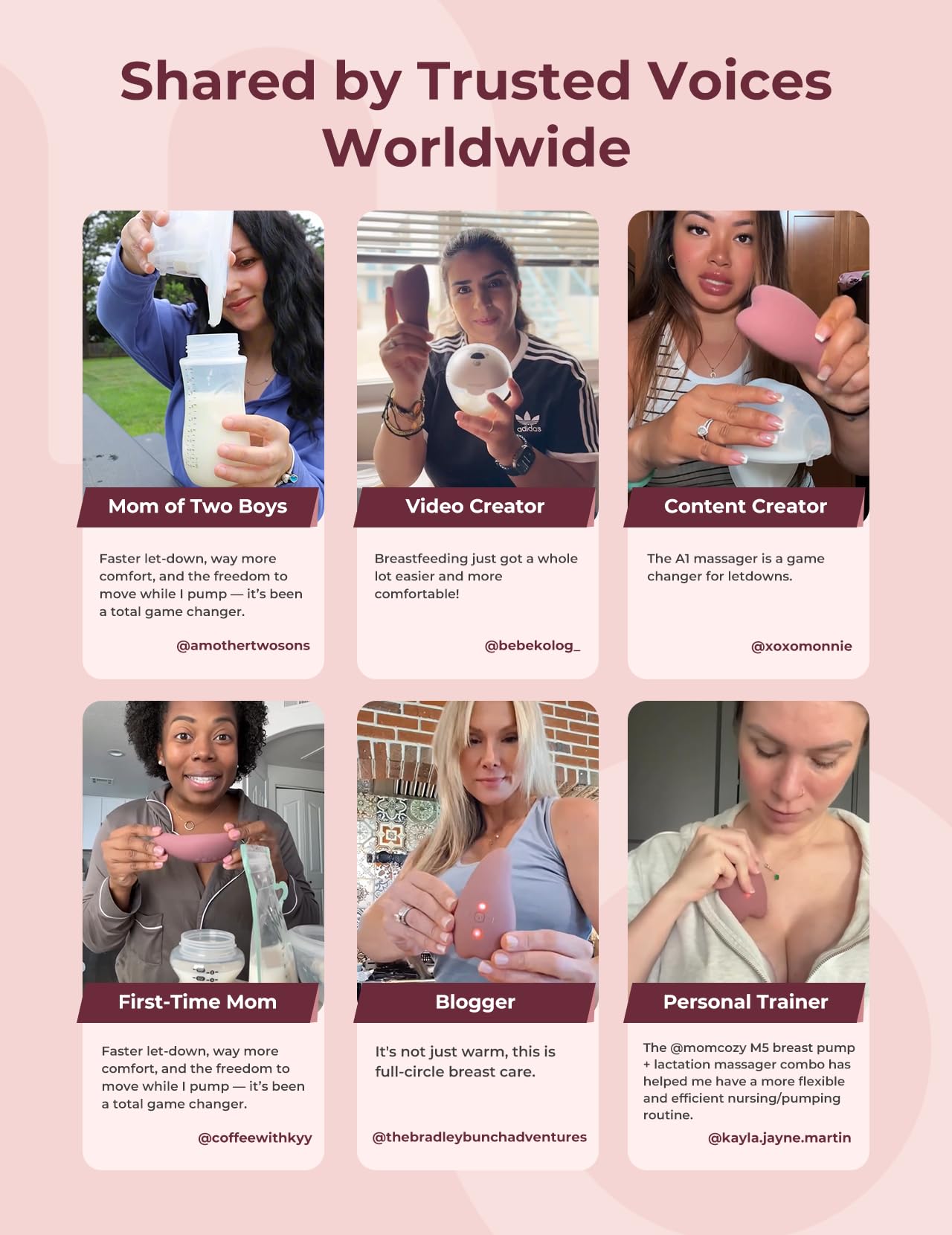 Trusted Combo & Professional Support: Momcozy's award-winning M5 pump & A1 massager are trusted by moms worldwide. Backed by our dedicated customer care team, we provide complete support throughout your breastfeeding experience.