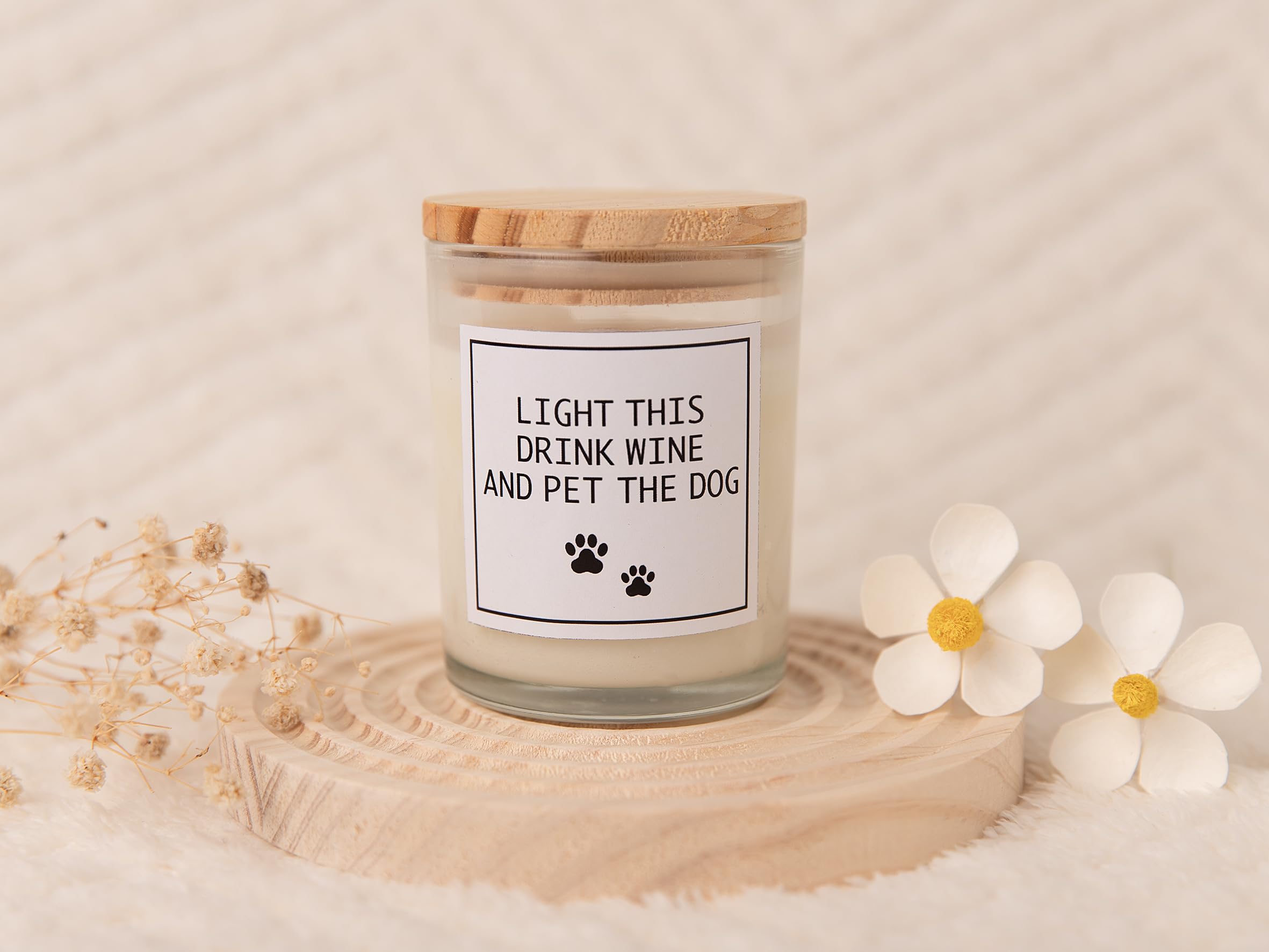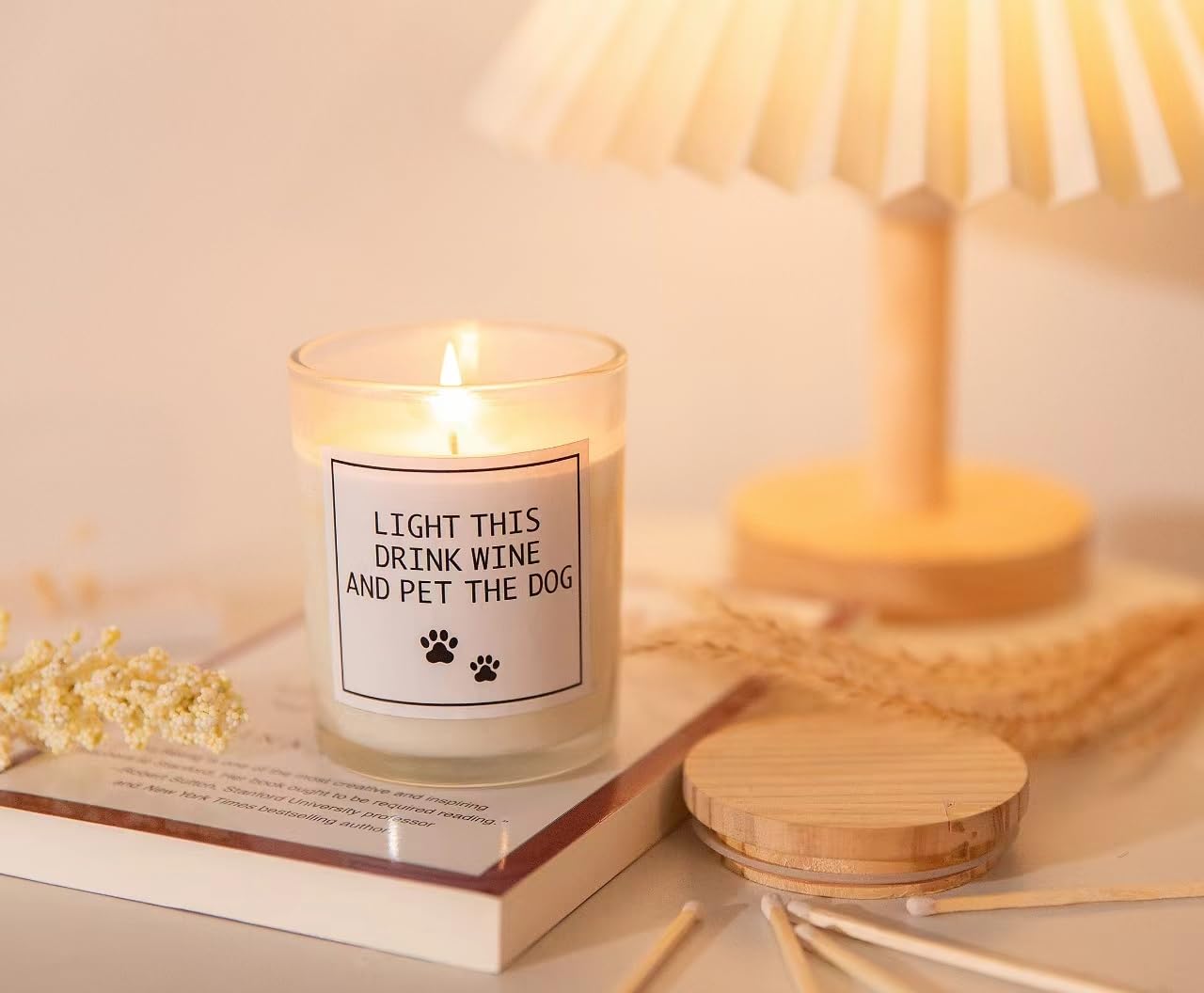 Funny Dog Gifts - This pet friendly scented candle is the perfect gift for dog lovers or pet owners! "Light This Drink Wine and Pet The Dog", adds a sense of humor to the gift and is the perfect gift for a fur-mom, dog-mom, best friend, best friend, friend at work, friend from afar, veterinarian or anyone who deals with pets! The person who receives this gift will love it and laugh!
