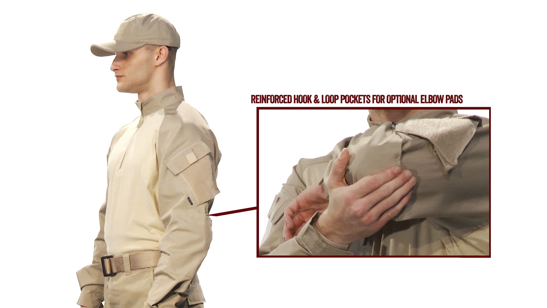 COMFORT FIT: Comfortable shirts feature a reinforced external elbow pockets with openings for elbow pads secured with hook and loop closures