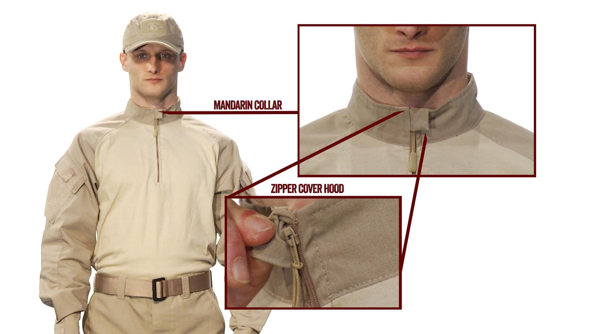 Description The same durability and protection of a combat jacket with the comfort of the original combat shirt with the addition of a 1/4 zip front with Mandarin collar for added protection. Based off the current military design that helps reduce the severity of burn injuries while providing a more comfortable uniform top under body Armor and vests. The body of the shirt is made from cordura Baselayer fabric that meets the no Melt, no drip thermal requirements officers demand while keeping them cool and dry by wicking away moisture from the body