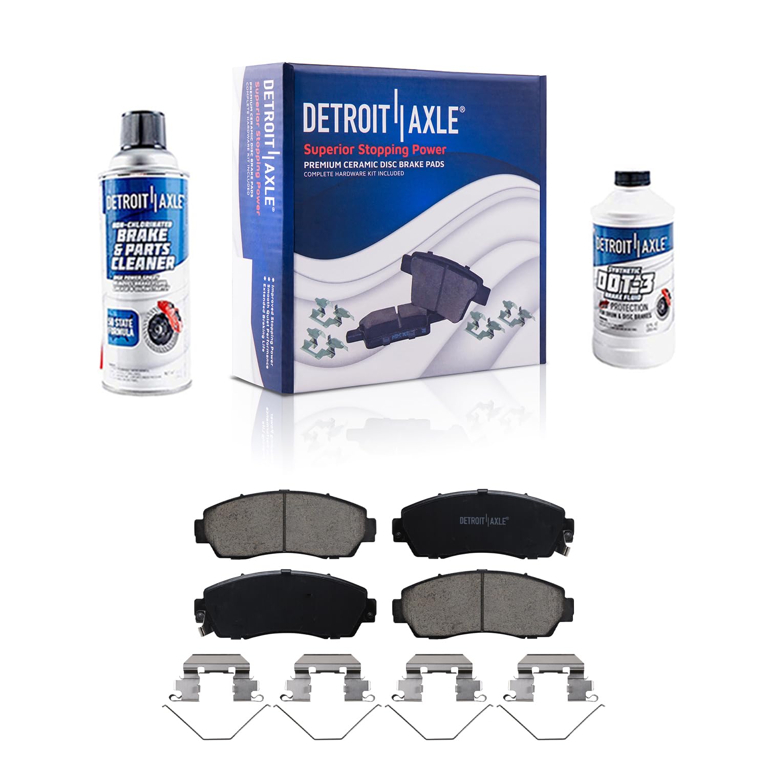 Kit Includes: 2x Front Disc Brake Rotors: R-800015 2x Rear Disc Brake Rotors: R-31469 2x Front Ceramic Brake Pads (Hardware Included): P-1521 2x Rear Ceramic Brake Pads (Hardware Included): P-1281 2x Front Wheel Bearing & Hubs Assembly - Driver & Passenger Side: 513293 1x 12oz Brake Fluid Bottle 1x 10oz Brake Cleaner Bottle Hub Specifications: Position: Front Left and Right Lugs: 5 Bolt ABS Type: Encoder Flange Type: 4-Bolt Square Drive Type: FWD Fitment: Replacement for 2015-2017 Honda Odyssey Introduction: Detroit Axle is a leading global retailer and distributor of OE re-manufactured and new aftermarket auto parts. We are committed to providing first-class products and outstanding customer service at an incredible value. Our rapidly-expanding product line includes CV Axles, Wheel Hub & Bearings, Suspension & Chassis parts, Complete Strut Assemblies, Shock Absorbers, Drilled & Slotted Brake Rotors, Conventional Brake Rotors, Ceramic Brake Pads, Brake Fluids, Brake Cleaners, Rack & Pinion Assemblies, Gearboxes, Drive Shafts, Transmissions, Brake Calipers, Wheel Lug Nuts, and more. With over 30 years of experience, we are proud that millions of customers around the world rely on Detroit Axle parts. We have two Metro Detroit storefront locations on the north and west sides of the city.