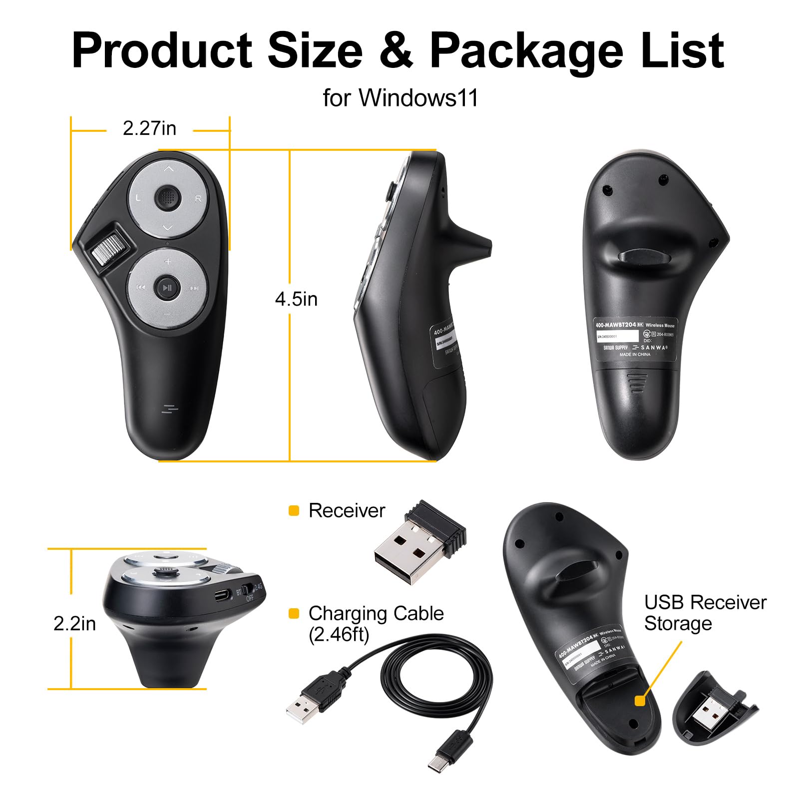 3 in 1 Handheld Mouse - This SANWA finger mouse features 8 keys, 1 cursor sensor, 1 scroll wheel, and 1 play/pause button. Allow for flexible use on/off the table. It works as a mini mouse, a wireless PowerPoint clicker, a music/video controller, and a page turner for ebook. Enable easy control of your desktop PC, laptop, phone, tablet, and TV screen during meetings, watching movies, reading, browsing, etc.