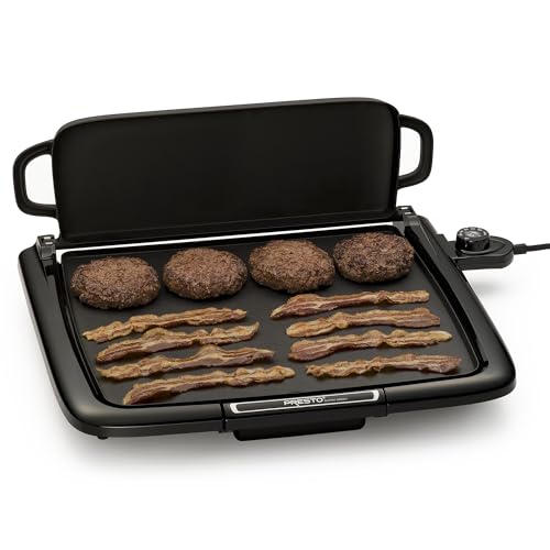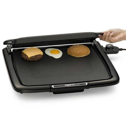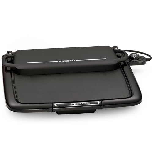 Griddle/Warmer Plus features an efficient square shape that holds more pancakes and eggs than conventional rectangular griddles. Its exclusive multi-function tray flips back to keep cooked foods warm, flips up for use as a spatter shield, swings forward to cover food for melting and steaming, and removes for use as a serving tray. The big 14- x 15-inch PFAS-free ceramic nonstick cooking surface is great for cooking any meal. Make bacon and eggs for breakfast, grilled sandwiches for lunch, and cheeseburgers for dinner, all with one versatile griddle. Its Control Masterยฎ heat control maintains cooking temperatures automatically. The griddle also features a cool-touch base with built-in backstop ledge for easy food handling and a slide-out drip tray that removes for quick cleanups. Griddle is fully immersible with the heat control removed and fits in standard kitchen cabinets.