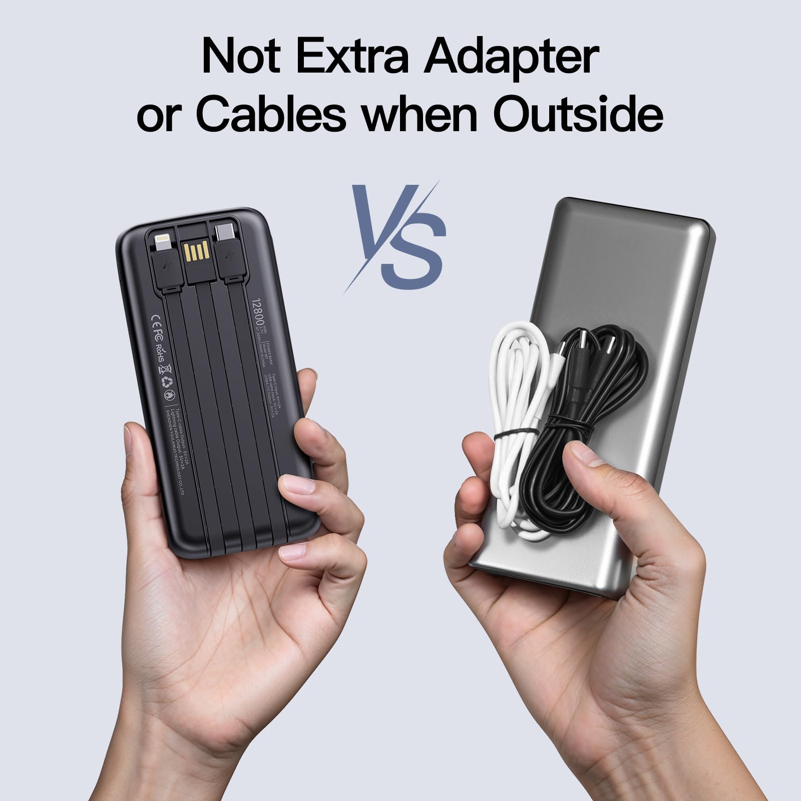 【Airline Approved & Ultimate Travel Companion】 Take it anywhere! This 12800mAh power bank meets all major airline carry-on regulations. Its incredibly slim profile and built-in cables eliminate bulk and tangled wires, slip it effortlessly into your pocket or bag. Perfect for hassle-free power on flights, road trips, or daily commutes. Your essential on-the-go power solution!