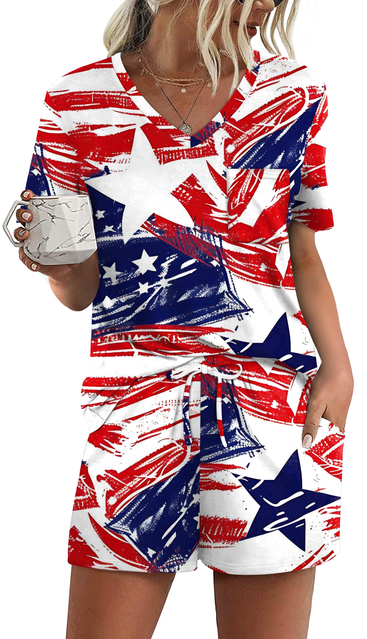 FEATURE --- The package including 1 x short sleeve t-shirt and 1 x short. The top has classic v neckline and a pocket. The short has elastic drawstring and side pockets. The cute top is perfectly complemented by shorts. Casual and sexy in daily life.