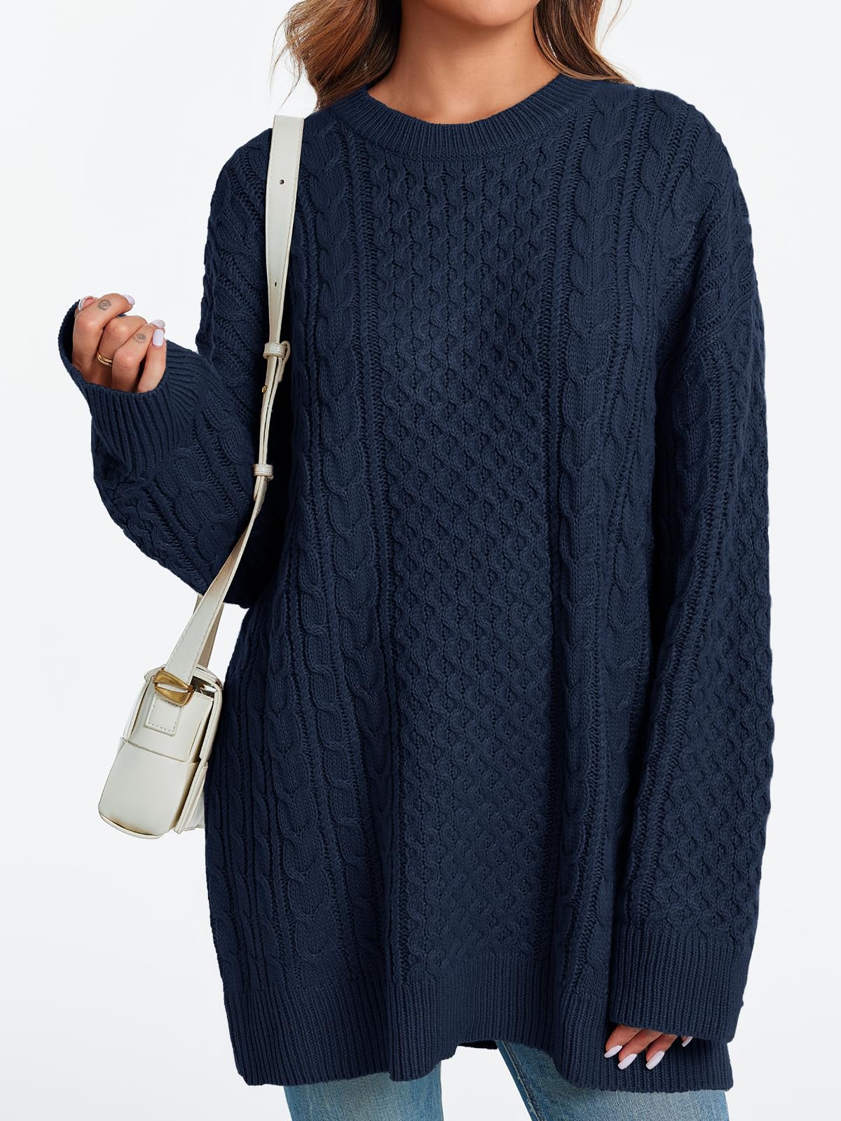 Feature: This tunic sweaters for women features crewneck, long sleeve, below hip length, cable knit, loose fit, chunky knit, slouchy baggy style, drop shoulder, ribbed hem, chunky cable knit sweater women, long sleeve sweater dress.
