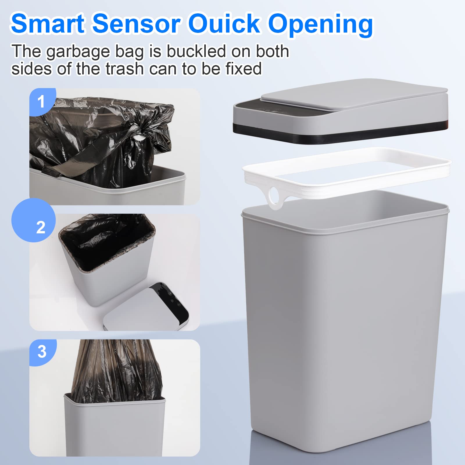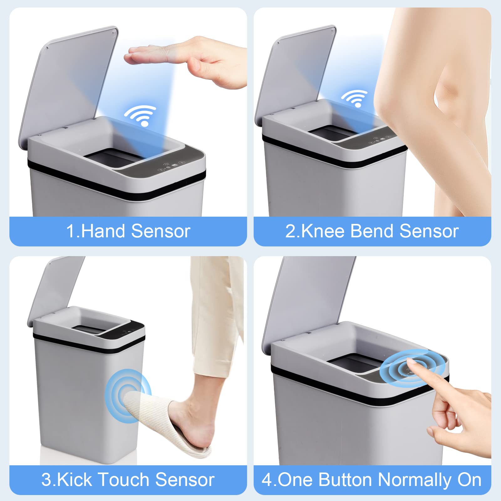 High Quality Material, Easy to Clean - The non-contact bathroom trash can is made of excellent plastic materials such as ABS+PP, the surface is sturdy and smooth, it can easily remove the dirt on the surface of the trash can with just one touch.