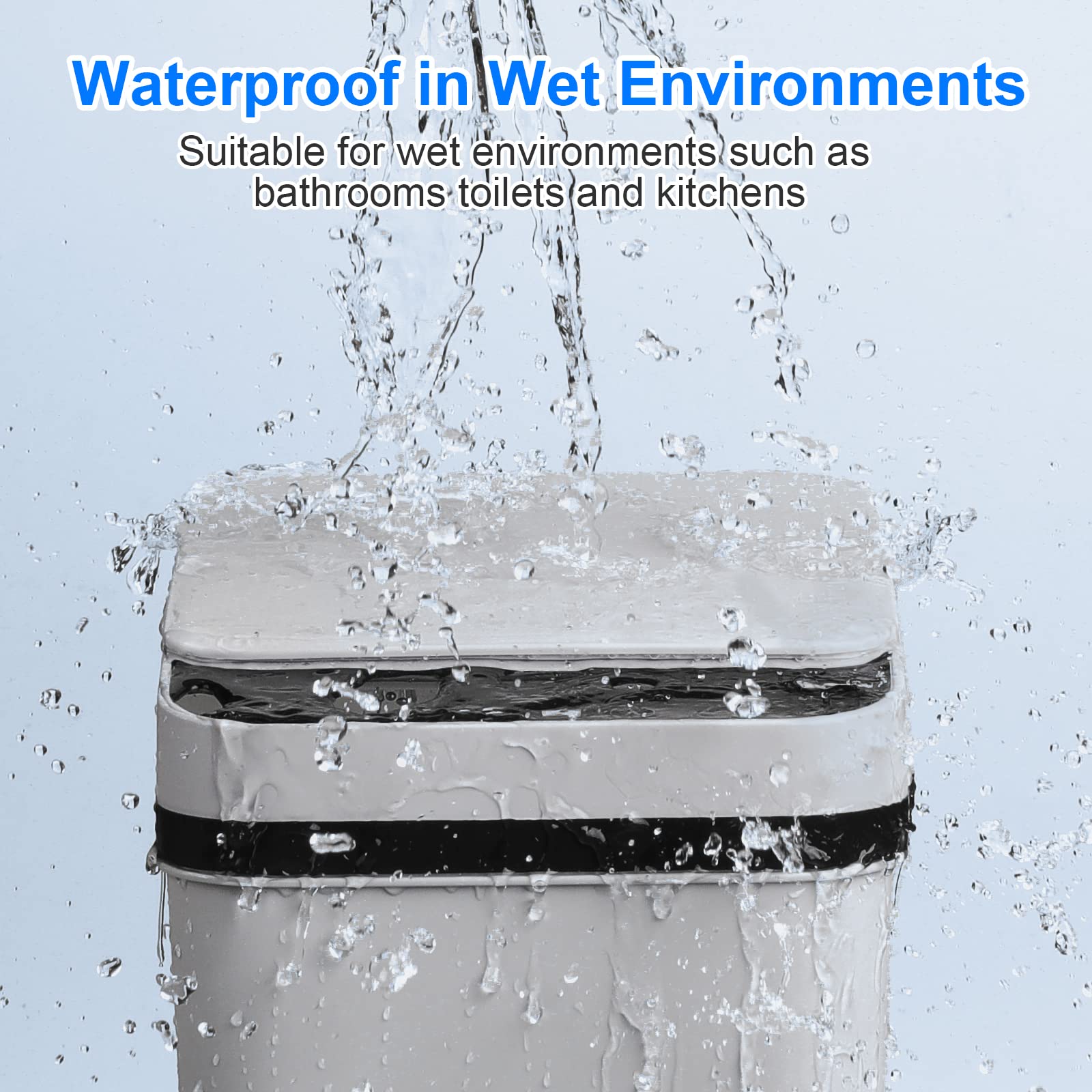 Seal Lid Design, Sensitive Sensor - The non-contact trash can use infrared technology to save battery life, powered by 2 AA batteries (not included), and at the same time use waterproof and moisture-proof materials, it will not affect your use in the bathroom.