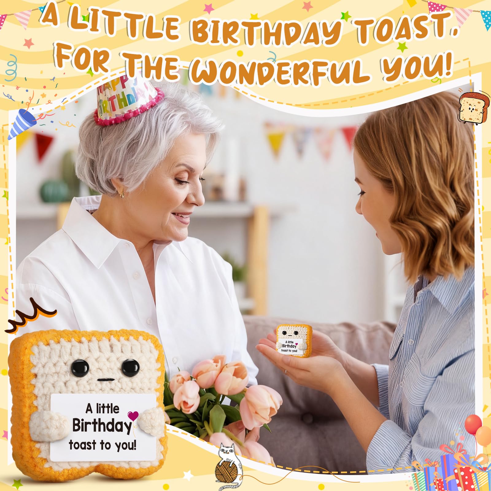 THE PERFECT UNIQUE BIRTHDAY SURPRISE – Tired of the usual boring gifts? The Ovrrcame Crochet Toast is the perfect funny and heartfelt present for everyone on your list. Surprise your best friend, sister, or mom with a gift they'll never forget. It's a wonderful choice for your dad, brother, or husband, and even a delightful surprise for a beloved coworker.