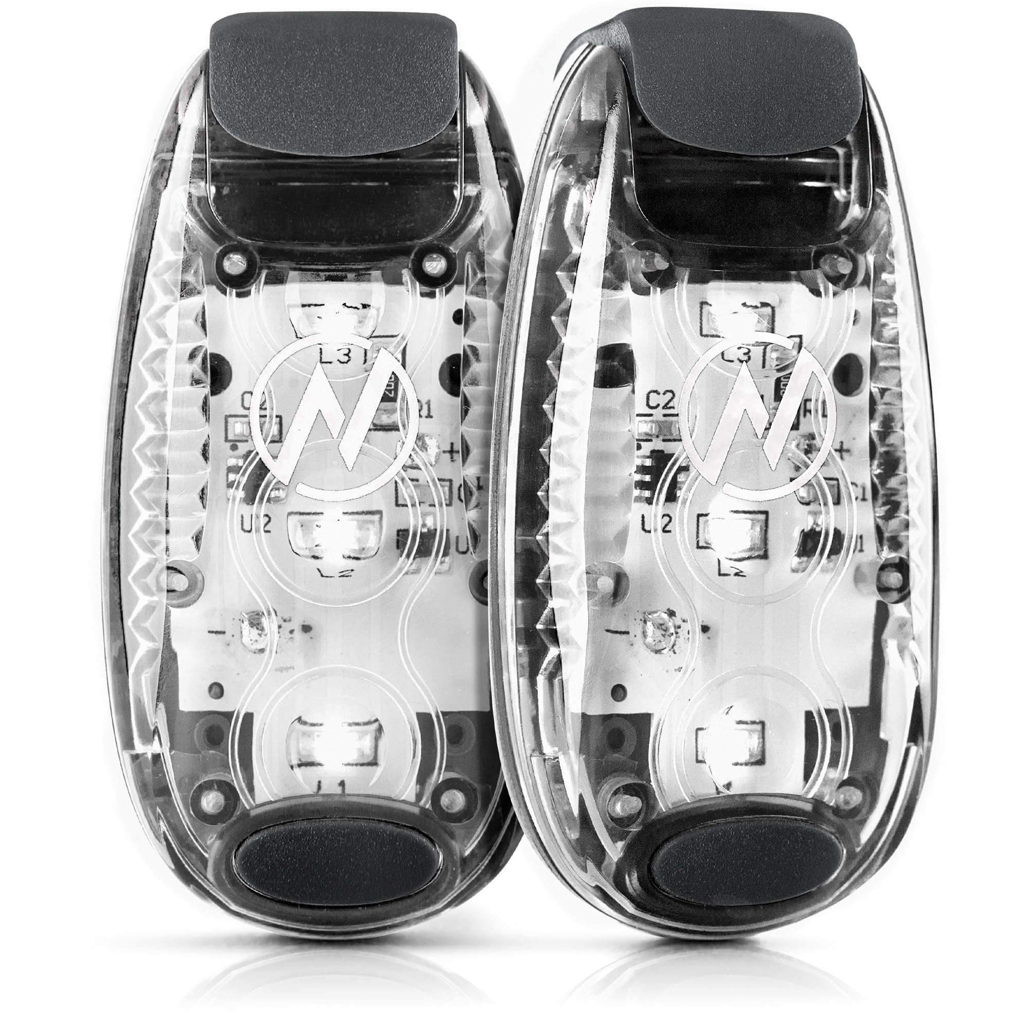 EXCEPTIONAL DESIGN. WINNING FUNCTIONALITY. Stay safe with this slim, lightweight, compact and super bright set of safety lights. Each light weighs just 1/3 oz, small as a USB stick. So light and compact you won't know you're wearing them, but motorists will spot you right away. 3 powerful lights per device means high visibility, 3 eye-catching lighting modes for any occasion : steady, slow flashing, fast flash. Industry leading batteries included give you up to 100 hours battery life.