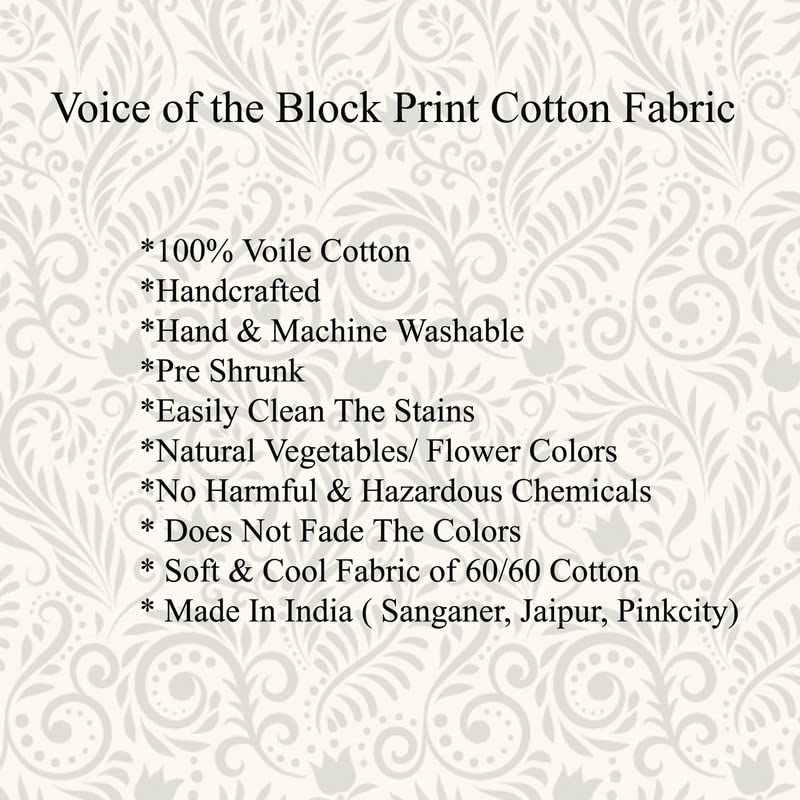 WOOD BLOCK PRINTED - With state of the art hand block ( wood block) printing technology. Proudly designed & printed in the INDIA in Sanganer/Bagru in Pinkcity Jaipur in The State of Rajasthan