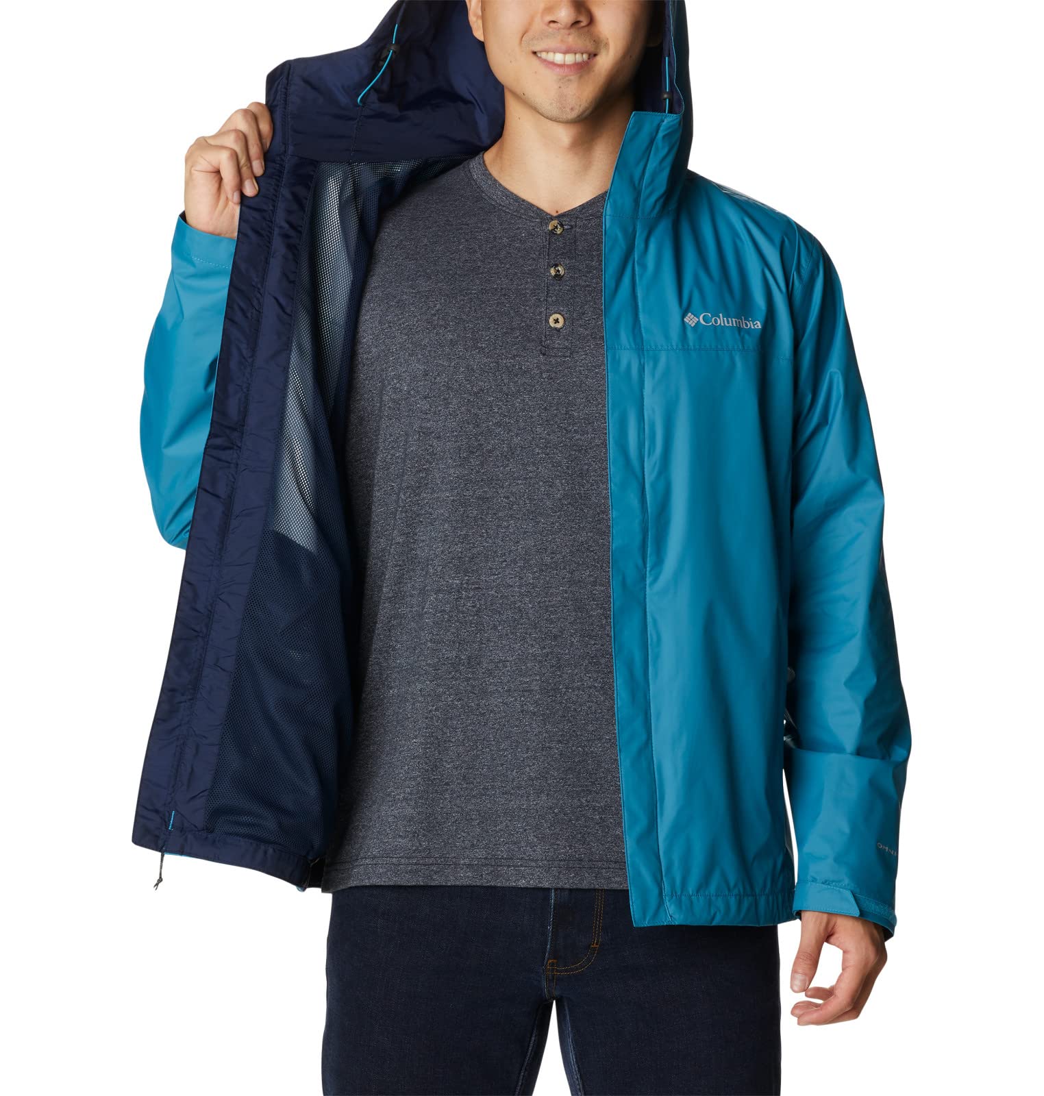 Description Columbia's rain jackets work around the clock to protect you from the outdoor elements. This Columbia Men's Watertight II Jacket is a rainy-day staple for its lightweight, waterproof and breathable design. The details of this jacket are essential for any rainy day. Crafted of 100% nylon material, this rain jacket is guaranteed to be waterproof; the seam-sealed construction keeps you dry while sealing the cold air out. Zippered pockets are featured on each side to secure your small items. Adjustable, velcro cuffs and an adjustable drawcord hem help give this jacket a customizable fit. Lastly, the packable silhouette make storing this staple easy. This packable rain jacket is available in a range of sizes and colors to accommodate many styles and fits. To ensure the size you choose is just right, utilize our sizing chart and the following measurement instructions: for the sleeves, start at the center back of your neck and measure across the shoulder and down to the wrist. If you come up with a partial number, round up to the next even number. For the chest, measure at the fullest part of the chest, under the armpits and over the shoulder blades, keeping the tape measure firm and level.