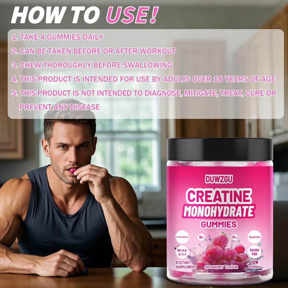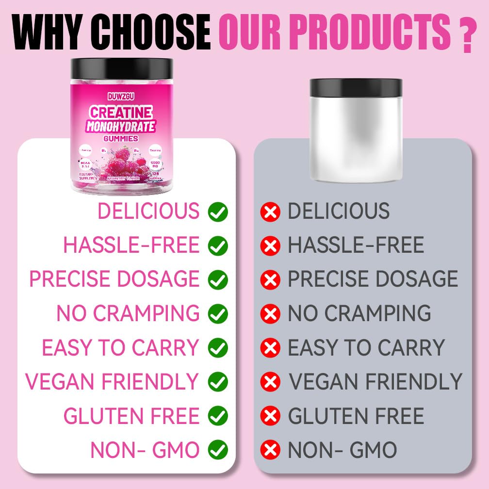 Easy to Take & Mix-Free Formula – No need for water or shakers! These chewable creatine gummies are convenient for on-the-go use, ensuring you get your daily dose of creatine without the hassle of mixing powders.