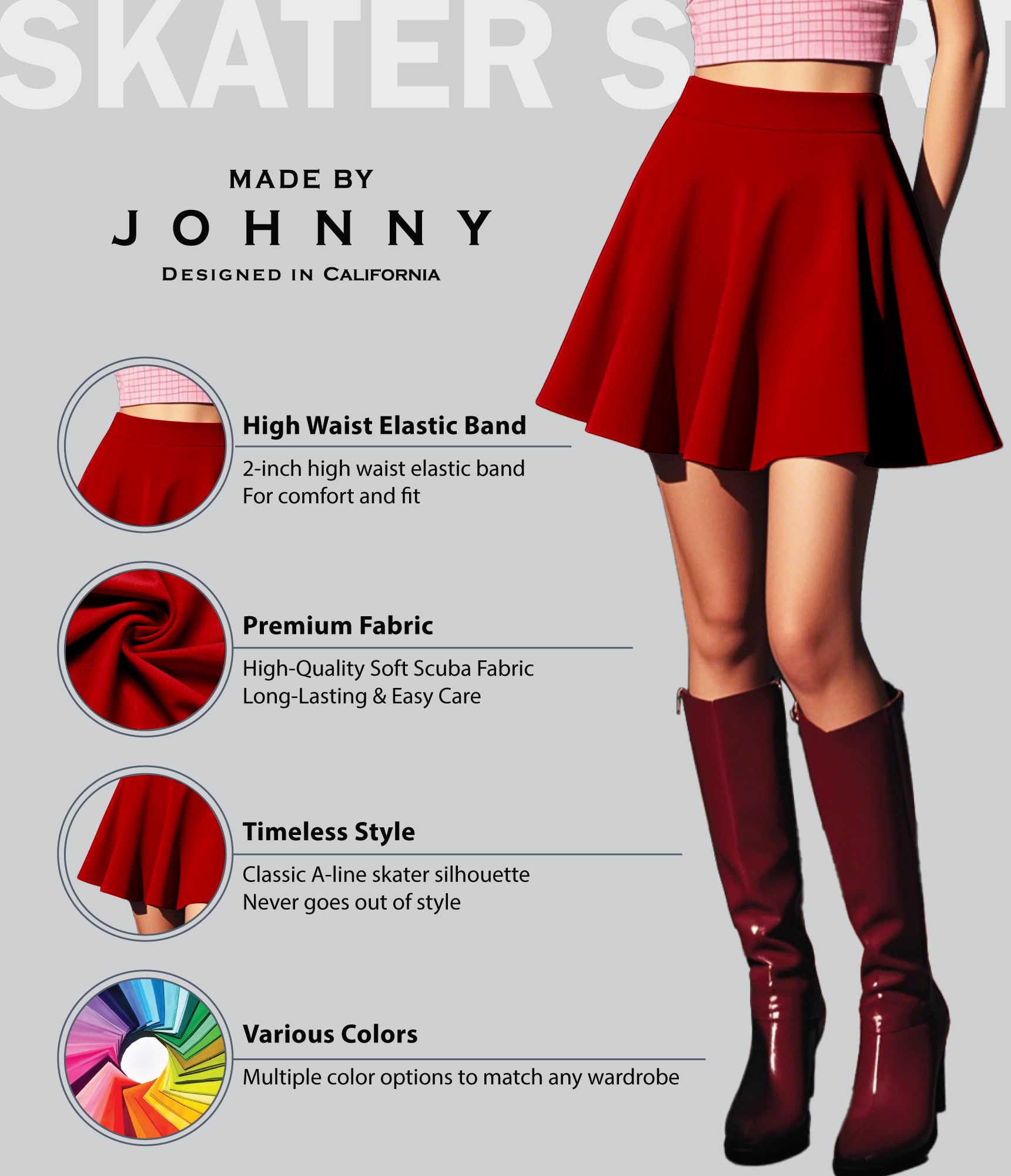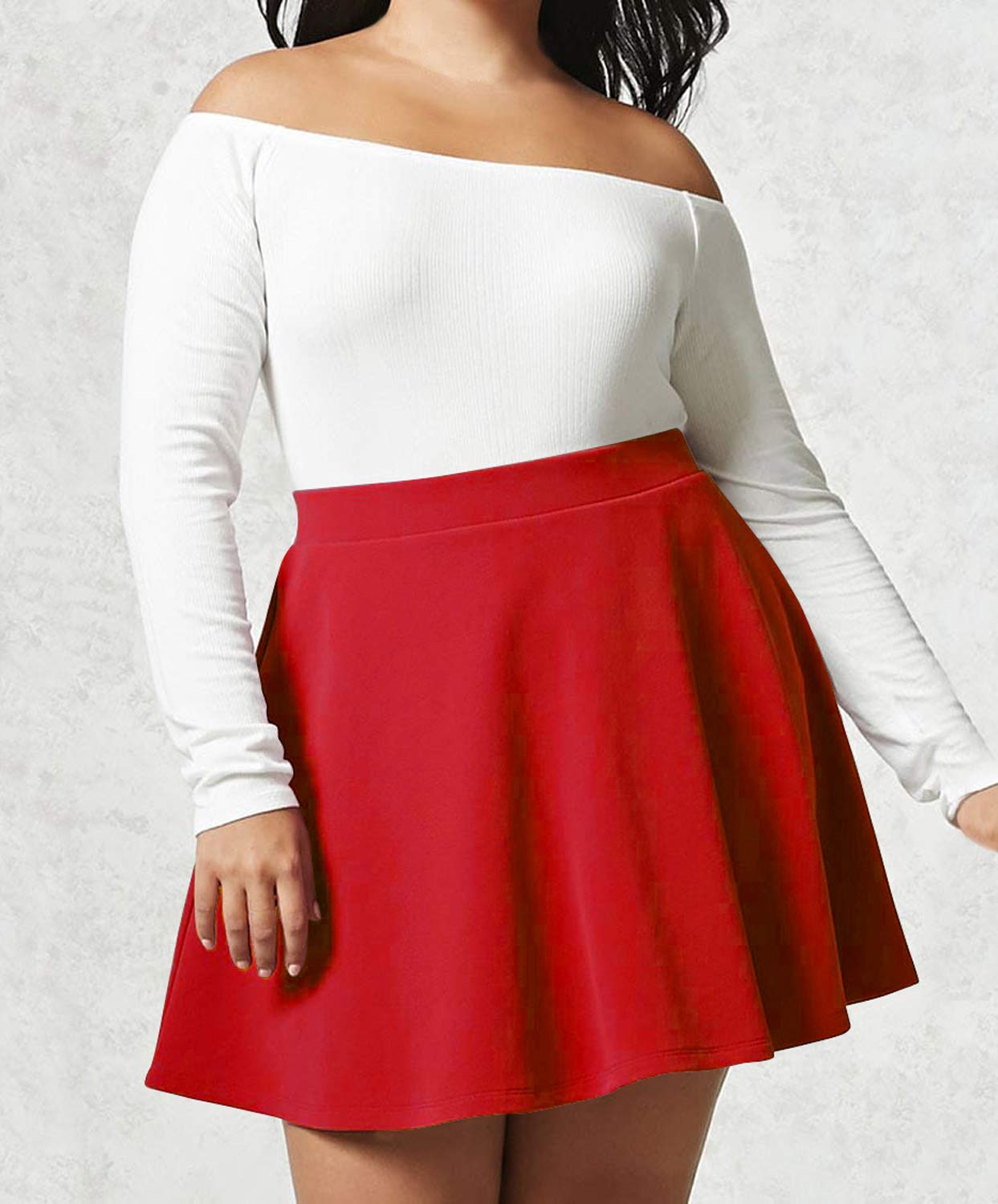Description Skater Skirt Features Elastic Waist Band, Solid Color, Short Length, And Vent Flared