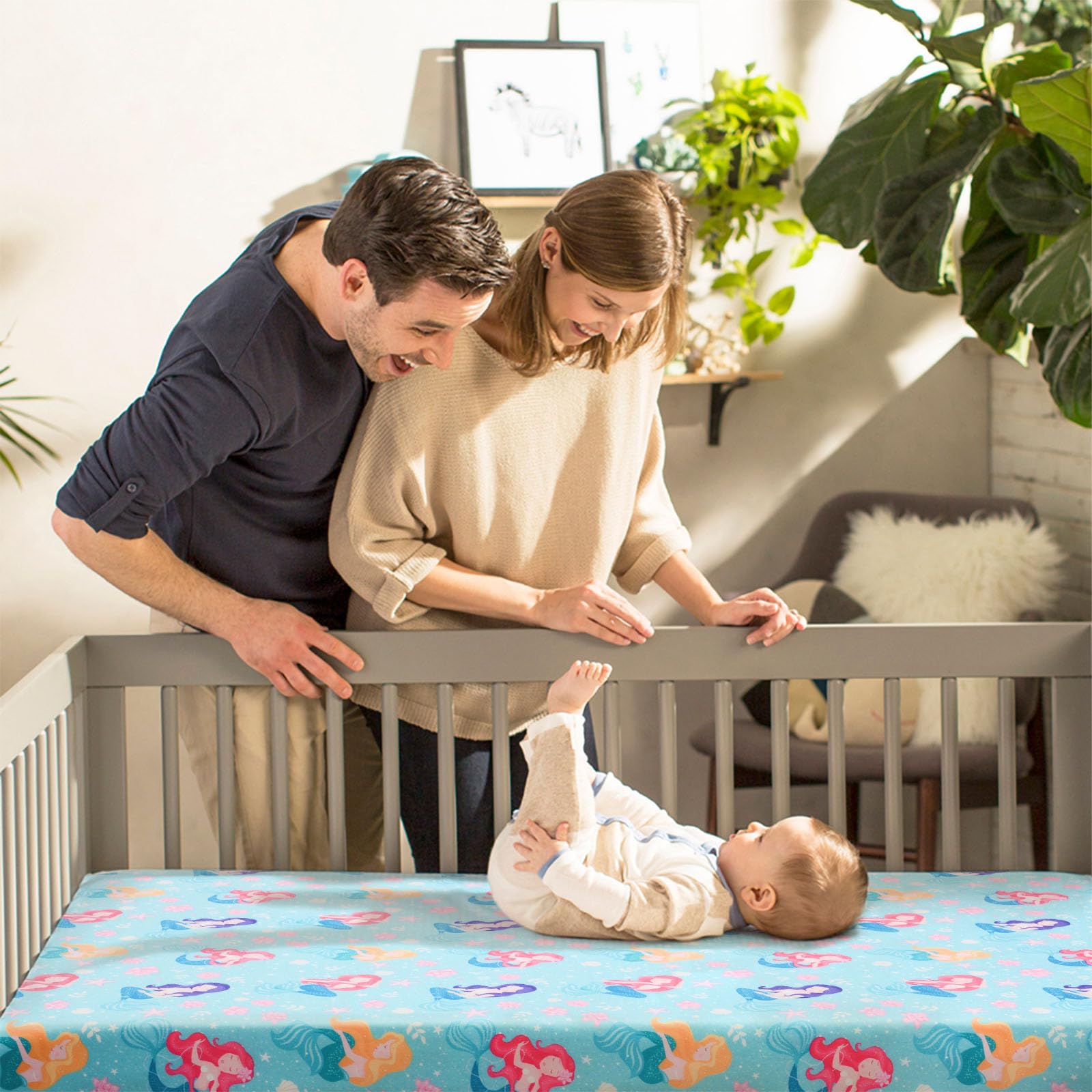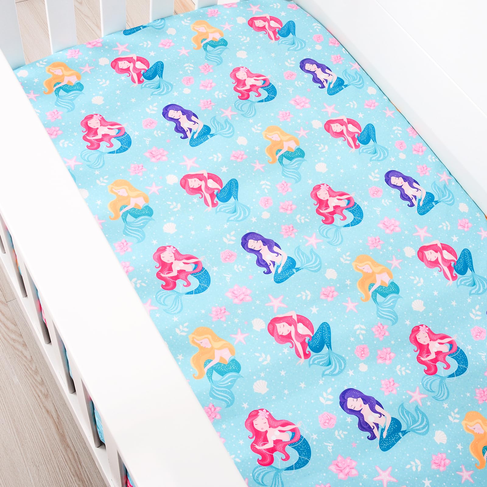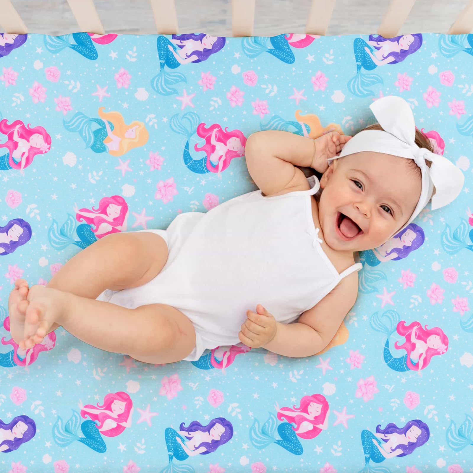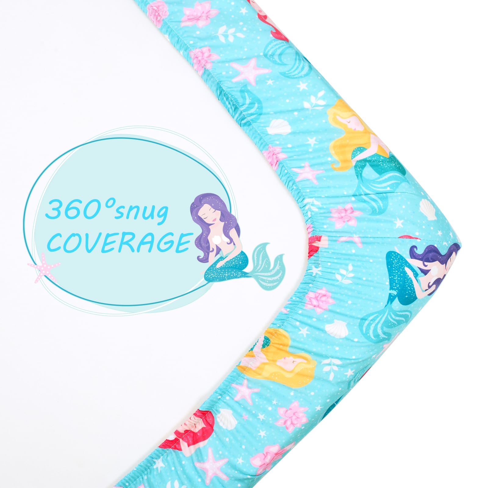 ใEasy Careใ: Machine washable this mermaids crib sheet on gentle cycle. please be careful not to let this product Direct contact with undiluted detergent to avoid local fading. Try to avoid sun exposure, can dry it on the reverse side.