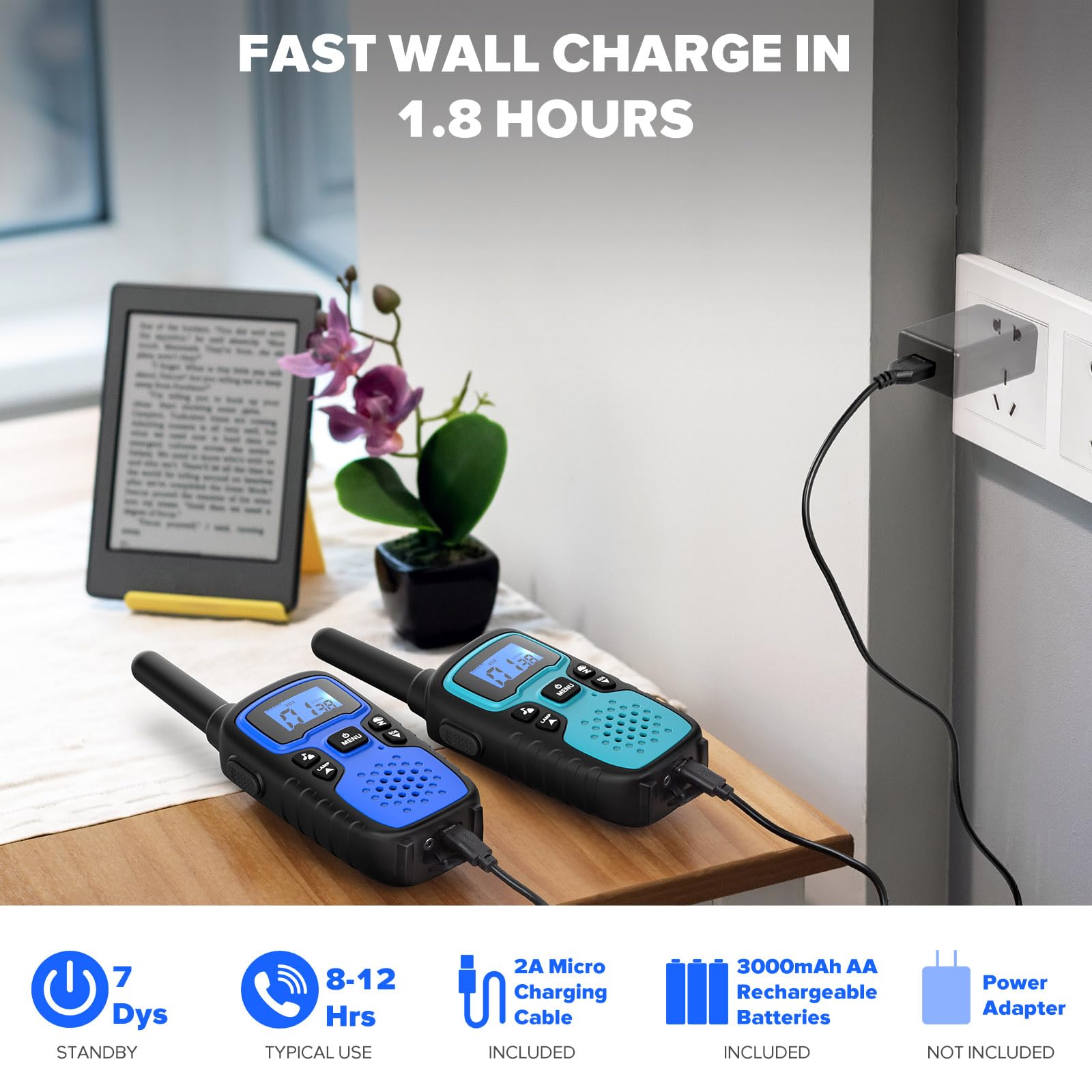 UNLIMITED COMMUNICATION TIME — The rechargeable walkie talkie supports micro USB charging. You can charge them indoors, on the road, and even camping and hiking, and you do not need to pay for batteries, again and again, saving stress and money for you.