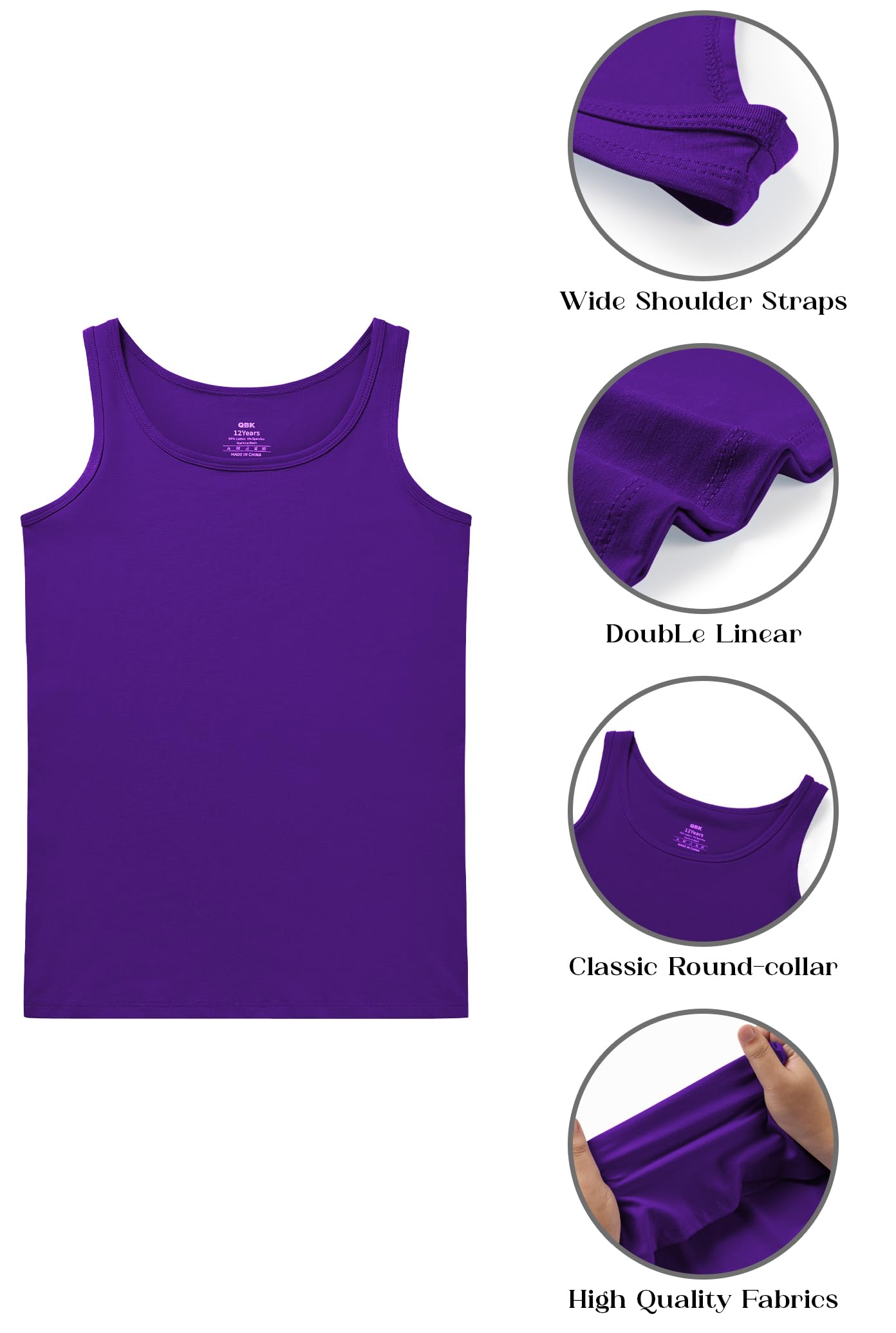 Tagless Design: The girls' tank tops feature a tagless design with a double-layered neckline and reinforced crew neck for enhanced durability and comfort.