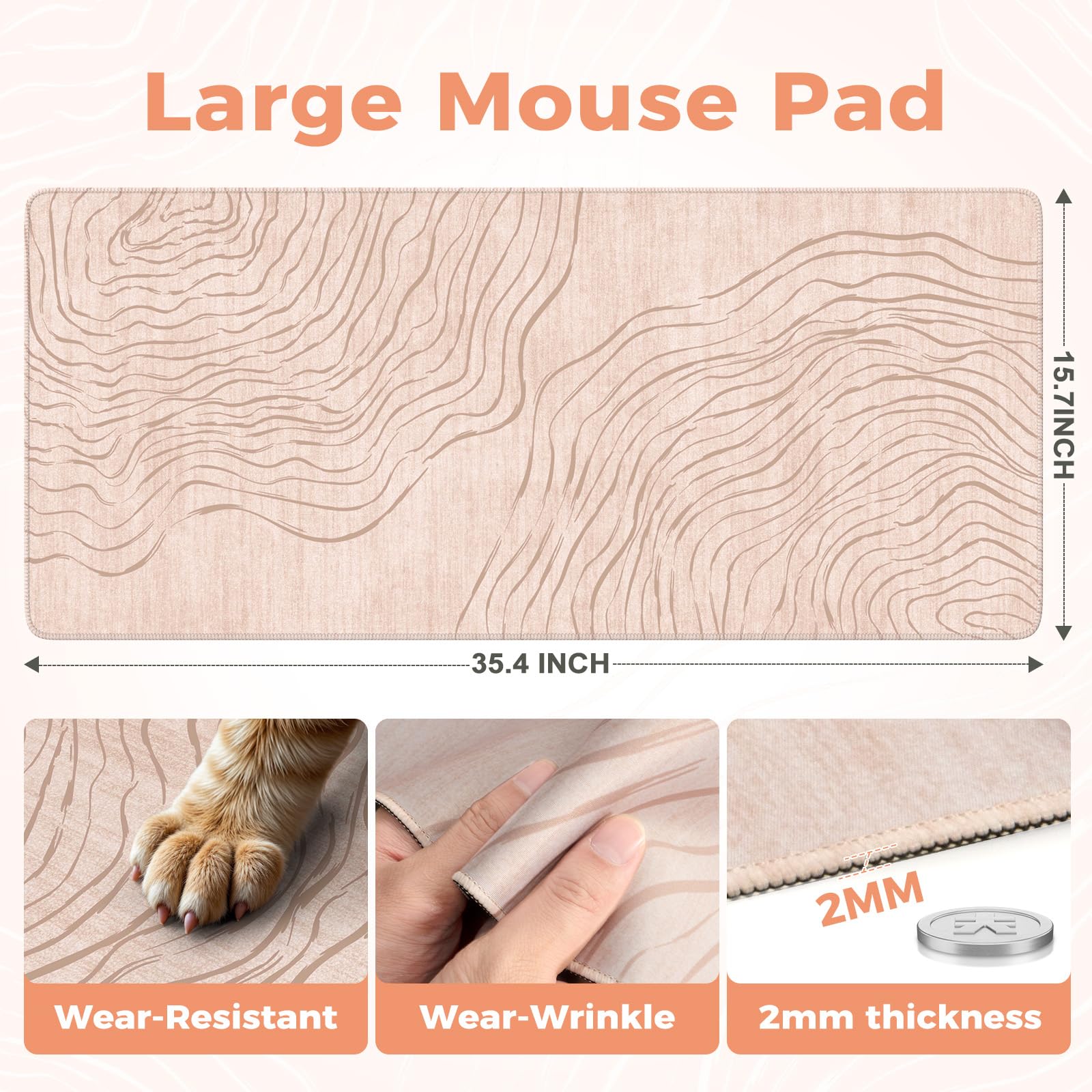 Protect your desktop-The surface of the neoprene mat is made of comfortable Lycra material with stitched edges for wear resistance and durability. As a result, this premium desk cover dorm protects your desktop from scratches, stains, heat and spills