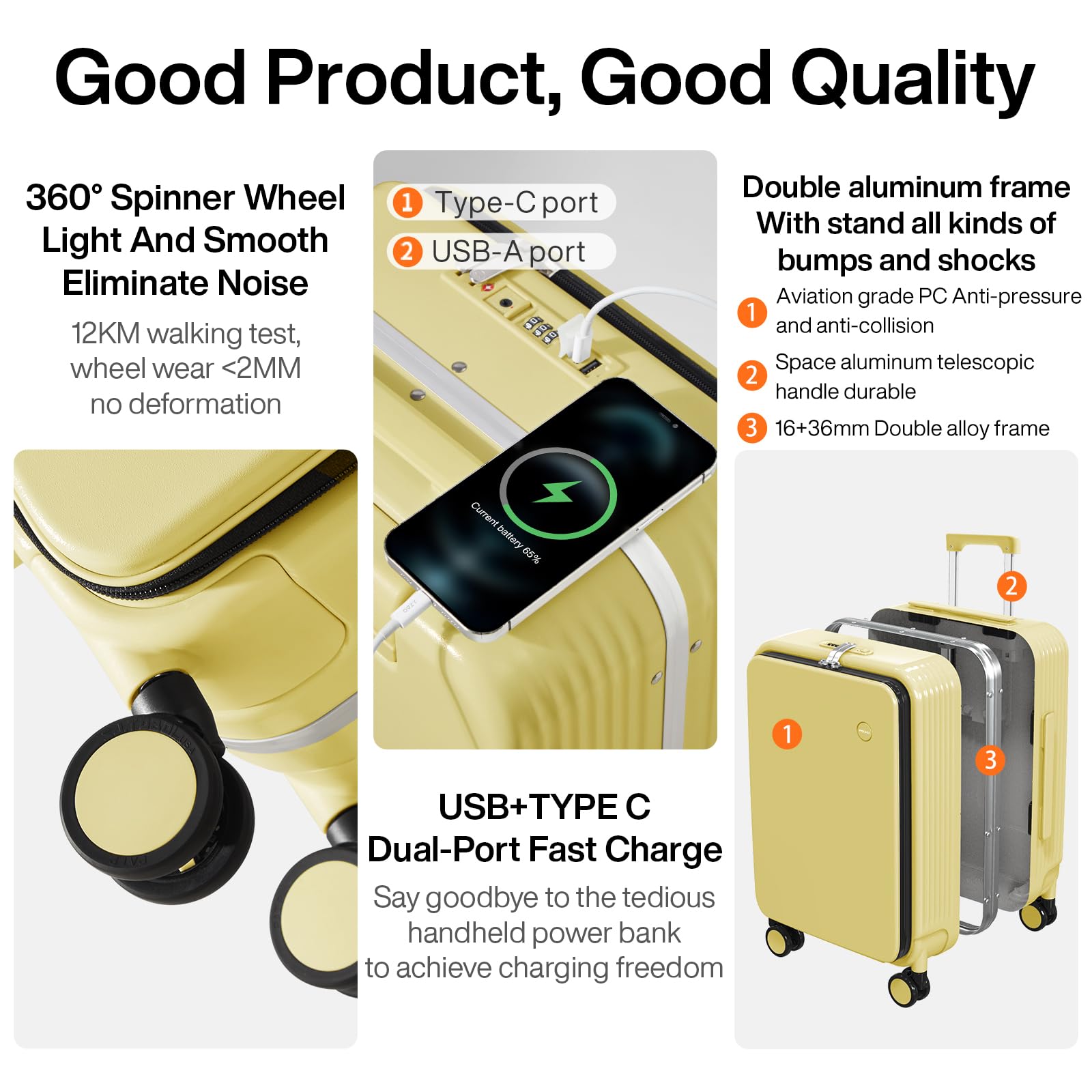 【High-end Quality】The suitcase is made of THREE-LAYER Covestro PC which is extremely scratch-resistant, it goes through insanely strict producing process and QC standard ensure this travel luggage’s high quality performance