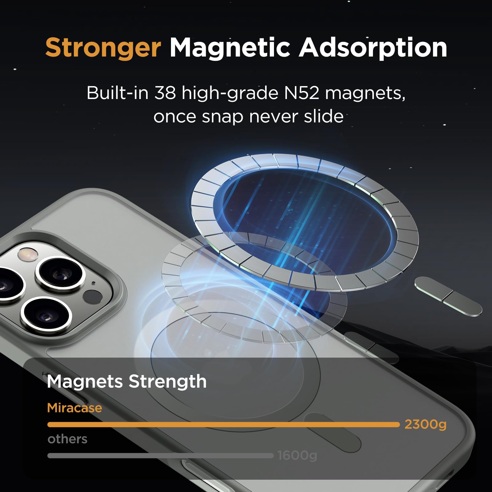 [Enhanced MagSafe Compatibility]: Specifically designed for iPhone 16 Pro Max, this case seamlessly aligns with MagSafe chargers for a secure connection and faster wireless charging. Built-in 38 N52 Magnetis, it also provides strong attachment to magnetic accessories, with an 60% increase in magnetic strength compared to other magnetic cases.