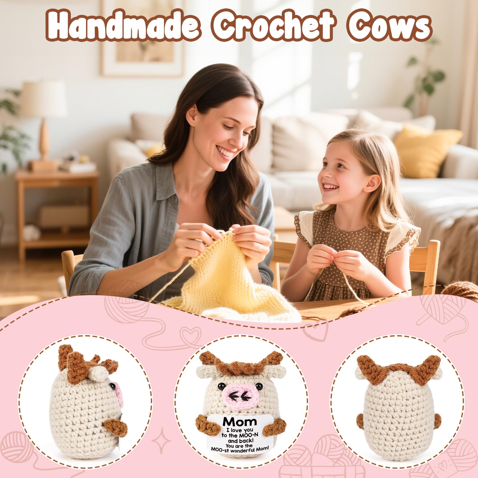Handmade Crochet Cow Presents for Mom: This crochet cow is made with high-quality yarn, meticulously hand-stitched for an appealing look, with a soft and comfortable touch is not only cute but also incredibly soft the size is approximately 3.5 x 2.36 inches