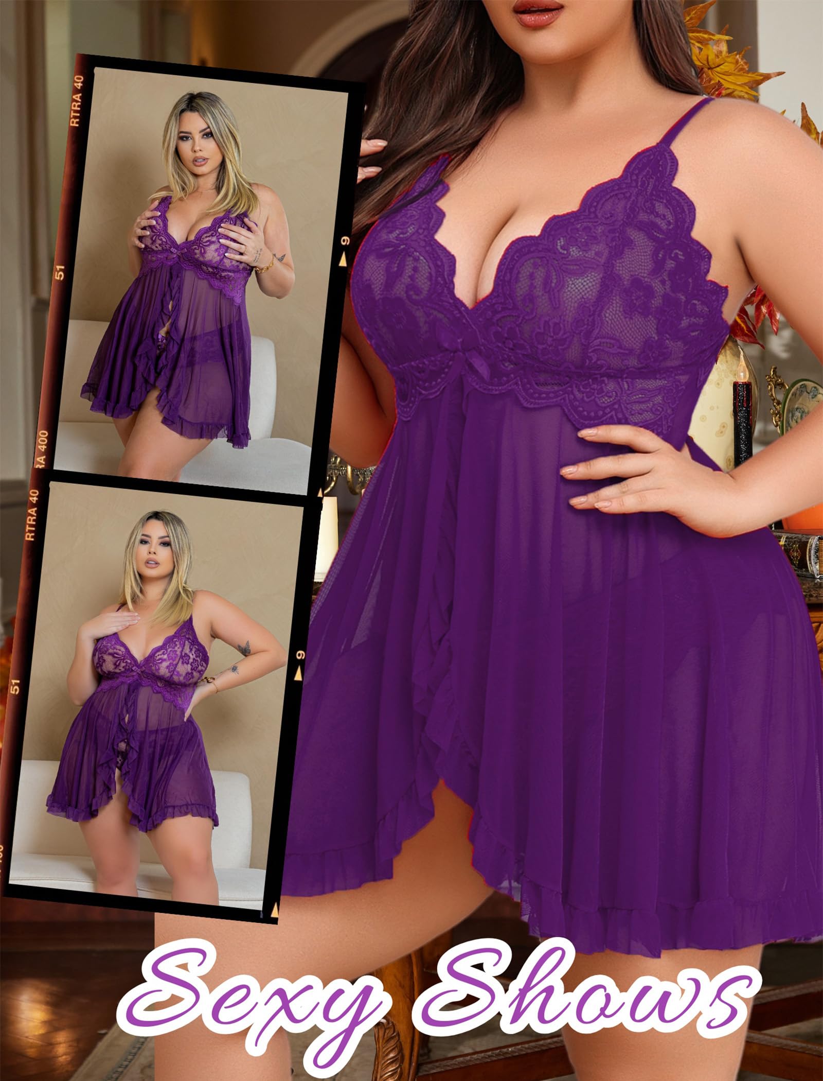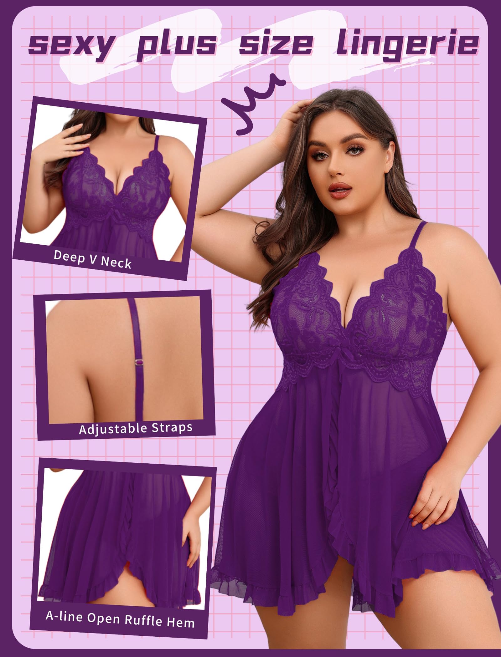 【High-quality Material】This plus size lingerie is made of 95% polyester and 5% spandex. Fabric is very soft and the lace craftsmanship is beautifully detailed.