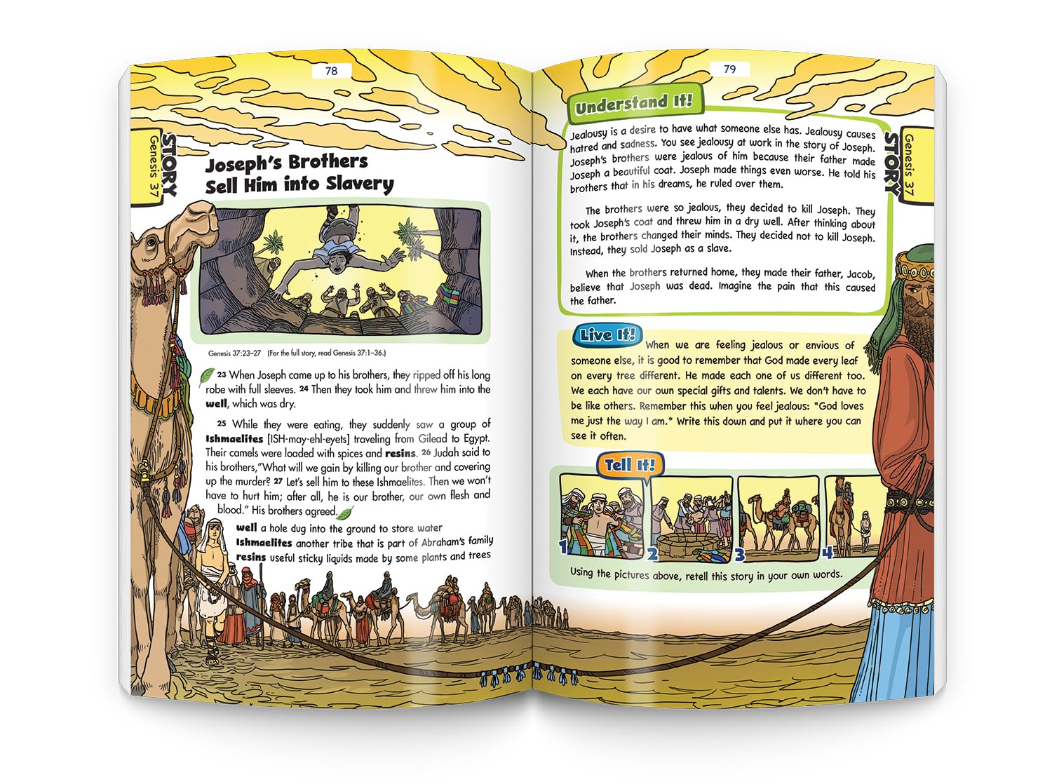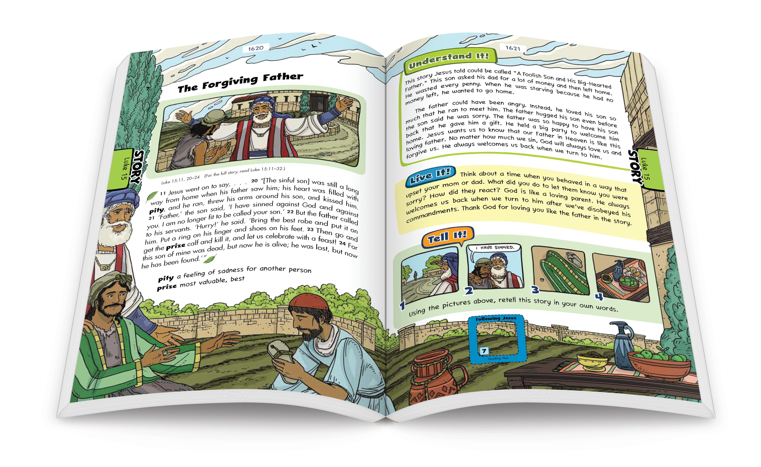 Empower and inspire children to read, understand, and love Godโs Word with The Catholic Childrenโs Bible. Created especially for children ages 6-11, this complete Catholic Bible makes Scripture come alive with large, easy-to-read print, vibrant illustrations, plus 125 Featured Bible stories that nurture both faith and comprehension. A resource-rich kidsโ Bible, The Catholic Childrenโs Bible also includes how to pray the Rosary, prayers and practices of the Catholic faith and more. Perfect as a Catholic Bible kids gift, Catholic family Bible, or childโs Bible for home, school, or parish programs. Key features: The best of both worlds: a complete Catholic Bible, along with 125 featured stories highlighting key passages Includes Reading Plans built on key themes; the Great People of Faith to the Miracles of Jesus, Following Jesus, and The Mass Durable, stitched pages will stand the test of childrenโs energy! Large chapter and verse numbers help children confidently navigate the Bible Designed to foster biblical literacy, encouraging children to explore Scripture deeply and grow in love for Godโs Word Good News Translation, which is easier for children to understand Paperback edition