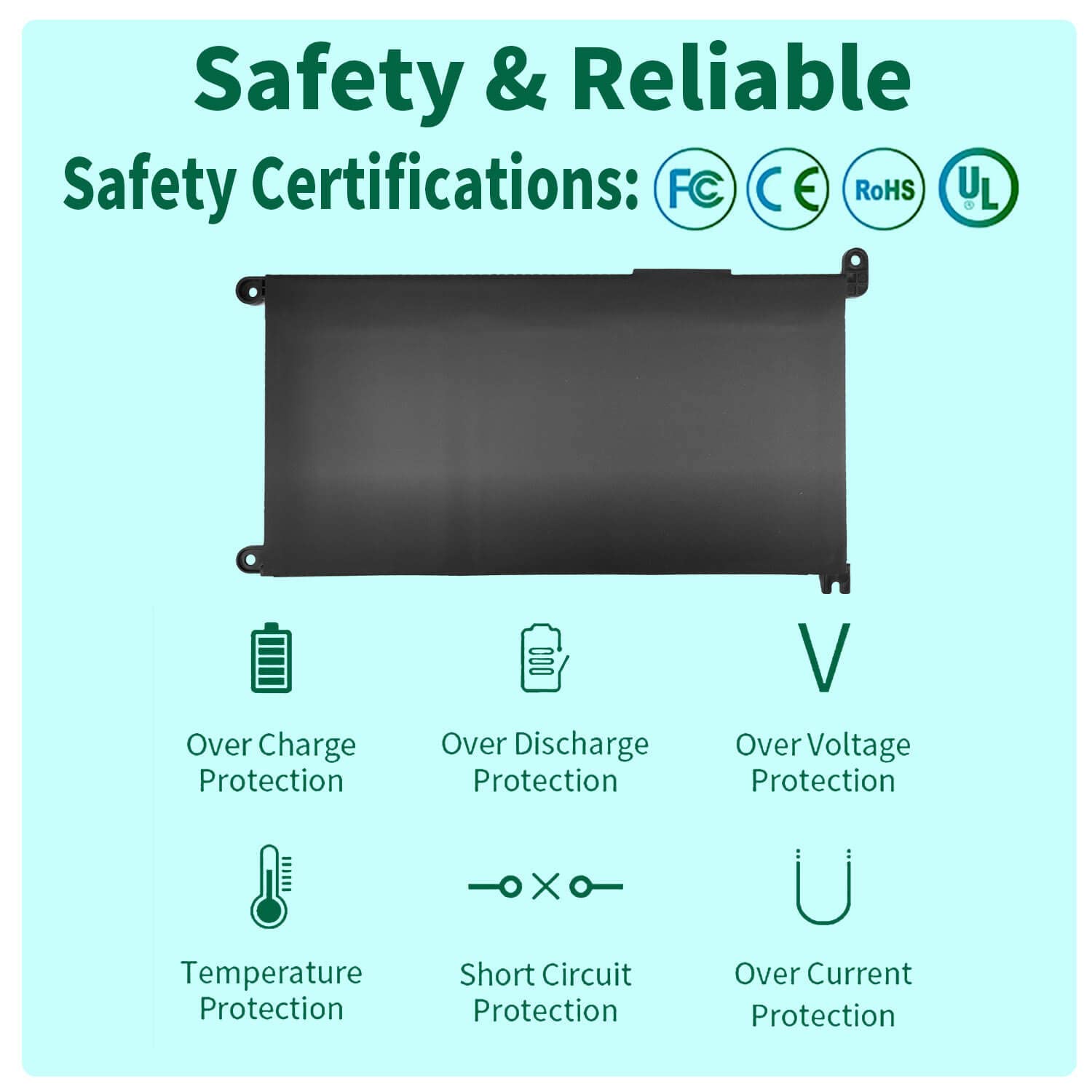 Our YRDD6 Dell battery replacement 1VX1H is highly compatible with the original Dell YRDD6 battery and meets CE/FCC/ROHS/UL certified standards. DMKAOLLK YRDD6 battery is a brand-new product from the manufacturer and supports up to 1000 recharge cycles.